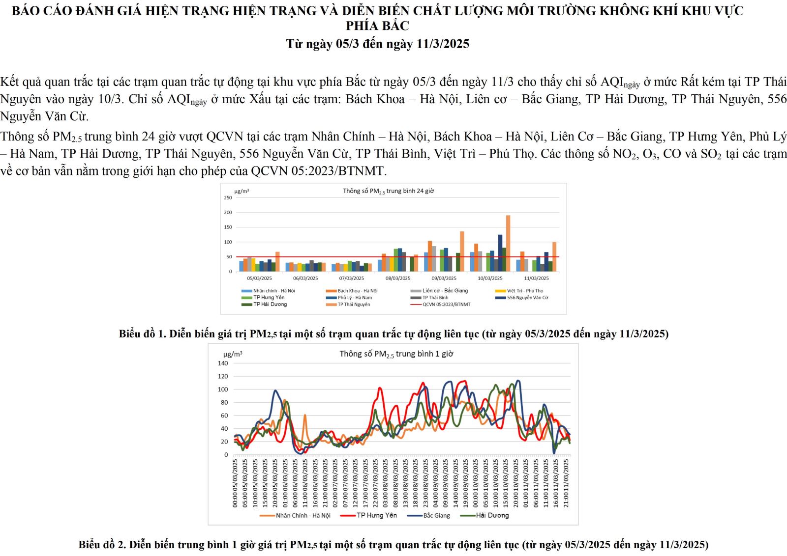 BÁO CÁO ĐÁNH GIÁ HIỆN TRẠNG HIỆN TRẠNG VÀ DIỄN BIẾN CHẤT LƯỢNG MÔI TRƯỜNG KHÔNG KHÍ KHU vự c PHÍA BẮC Từ ngày 05/3 đến ngày 11/3/2025