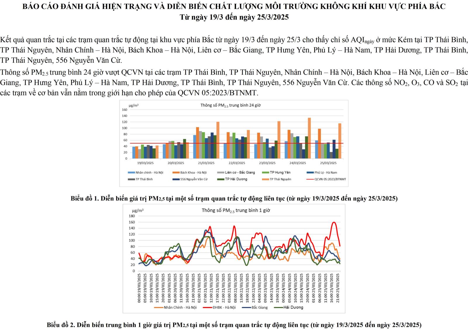 BÁO CÁO ĐÁNH GIÁ HIỆN TRẠNG VÀ DIỄN BIÉN CHẤT LƯỢNG MÔI TRƯỜNG KHÔNG KHÍ KHU v ự c PHÍA BẮC Từ ngày 19/3 đến ngày 25/3/2025