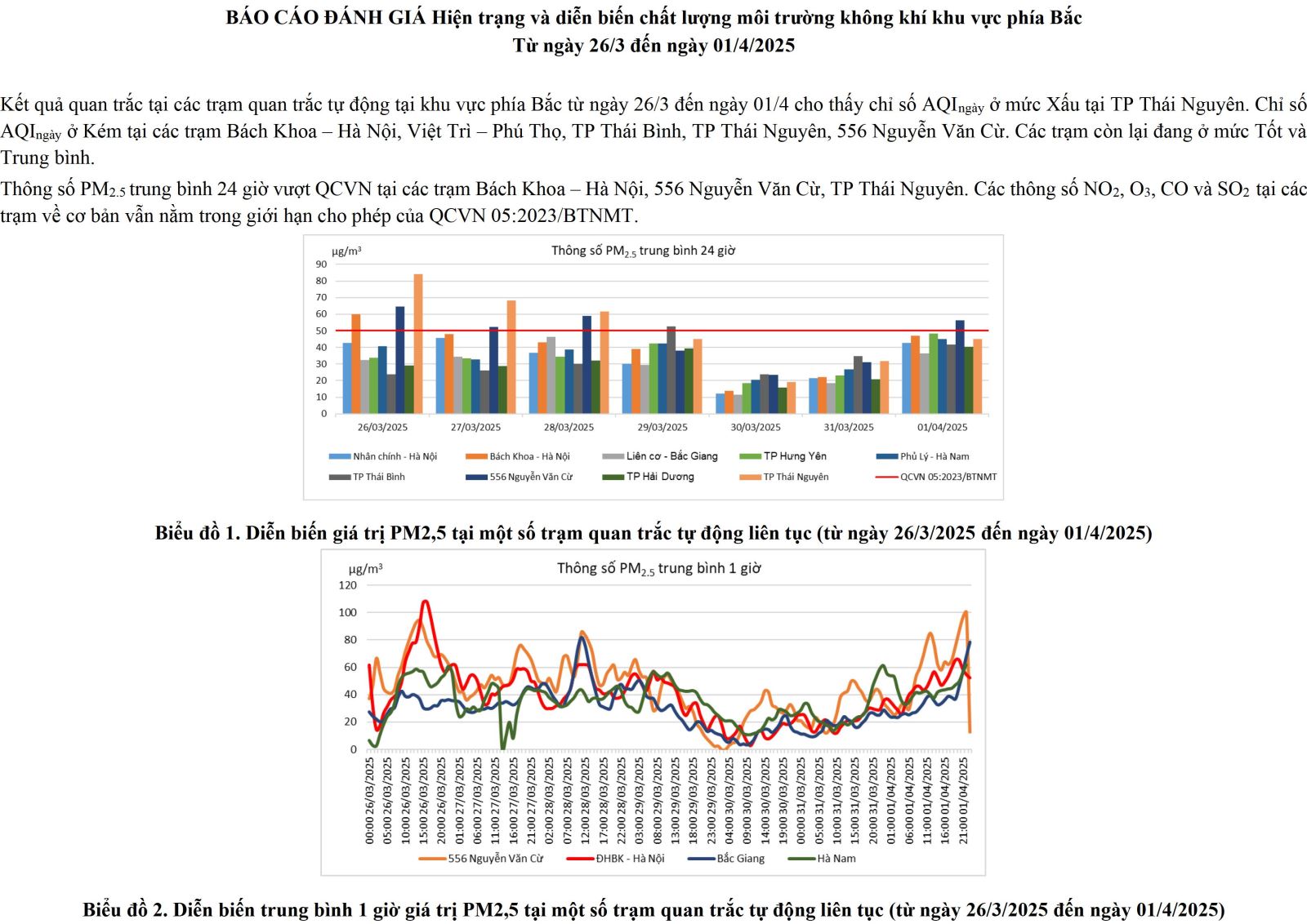 BÁO CÁO ĐÁNH GIÁ Hiện trạng và diễn biến chất lượng môi trường không khí khu vực phía Bắc Từ ngày 26/3 đến ngày 01/4/2025