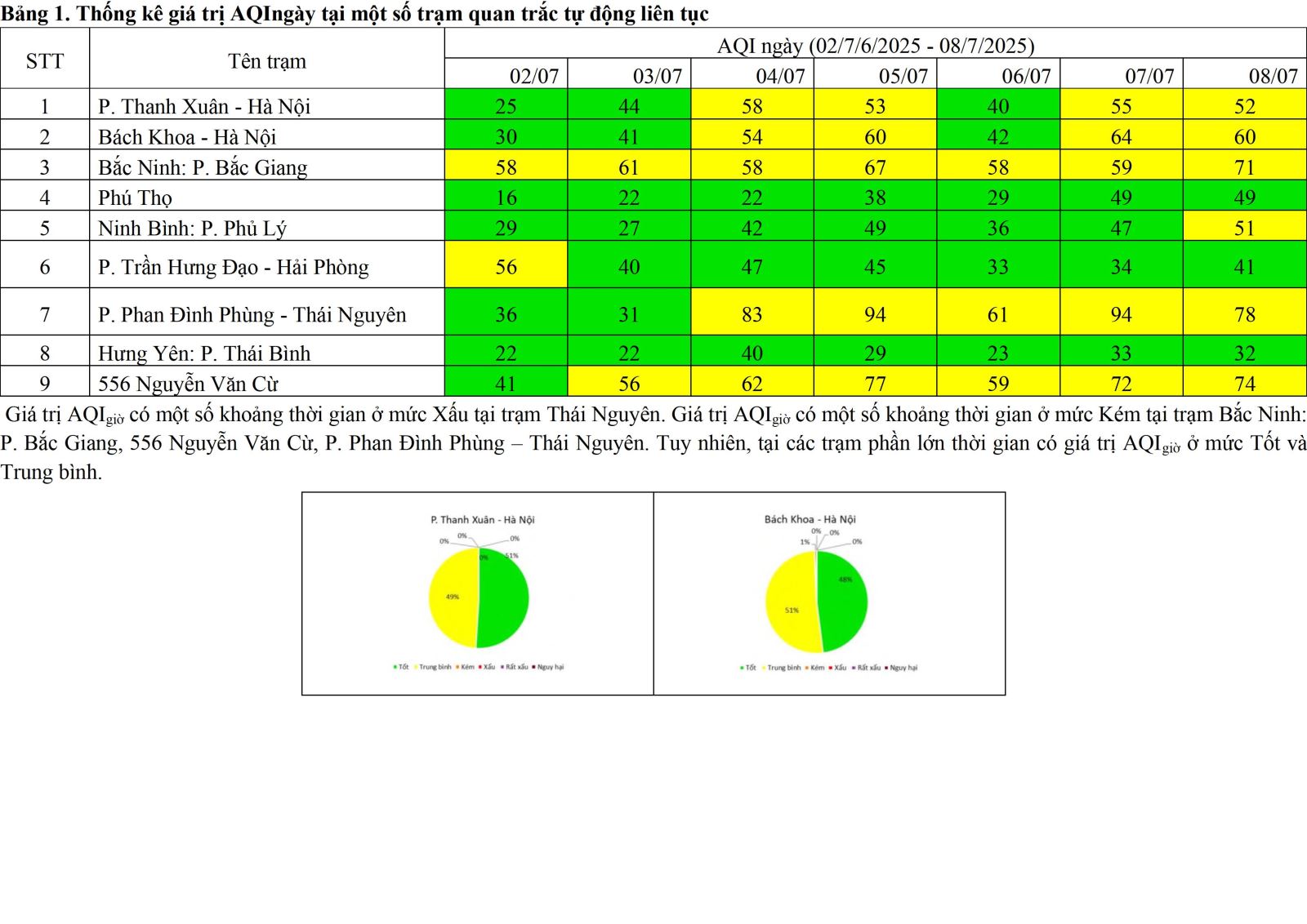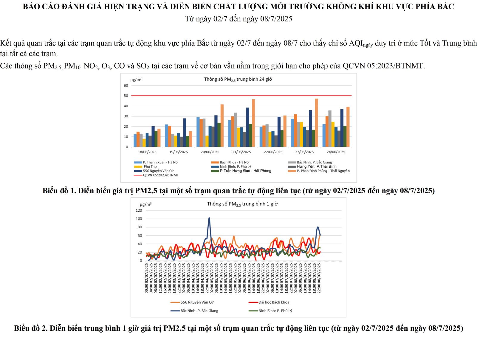 BÁO CÁO ĐÁNH GIÁ HIỆN TRẠNG VÀ DIỄN BIẾN CHẤT LƯỢNG MÔI TRƯỜNG KHÔNG KHÍ KHU VỰC PHÍA BẮC Từ ngày 02/7 đến ngày 08/7/2025