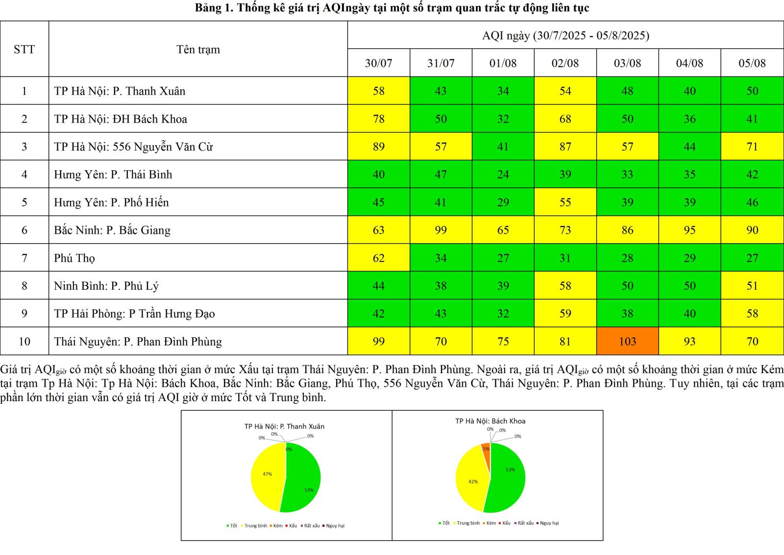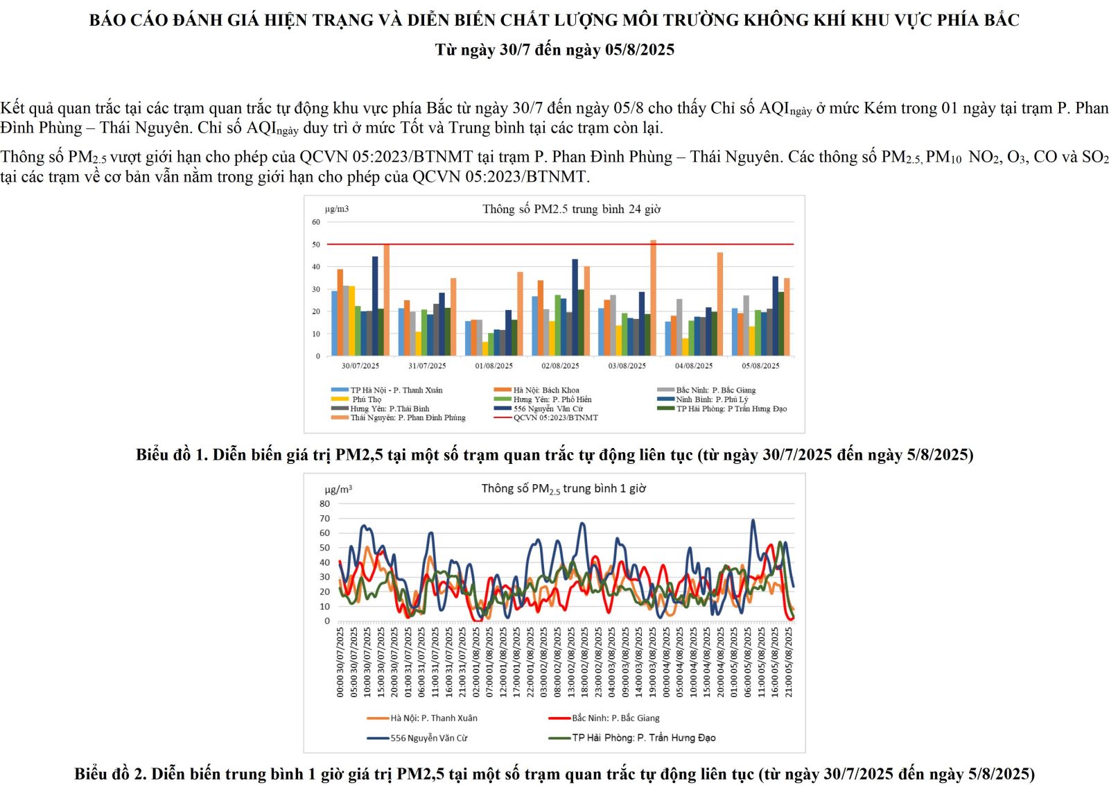 BÁO CÁO ĐÁNH GIÁ HIỆN TRẠNG VÀ DIỄN BIẾN CHẤT LƯỢNG MÔI TRƯỜNG KHÔNG KHÍ KHU VỰC PHÍA BẮC Từ ngày 30/7 đến ngày 05/8/2025