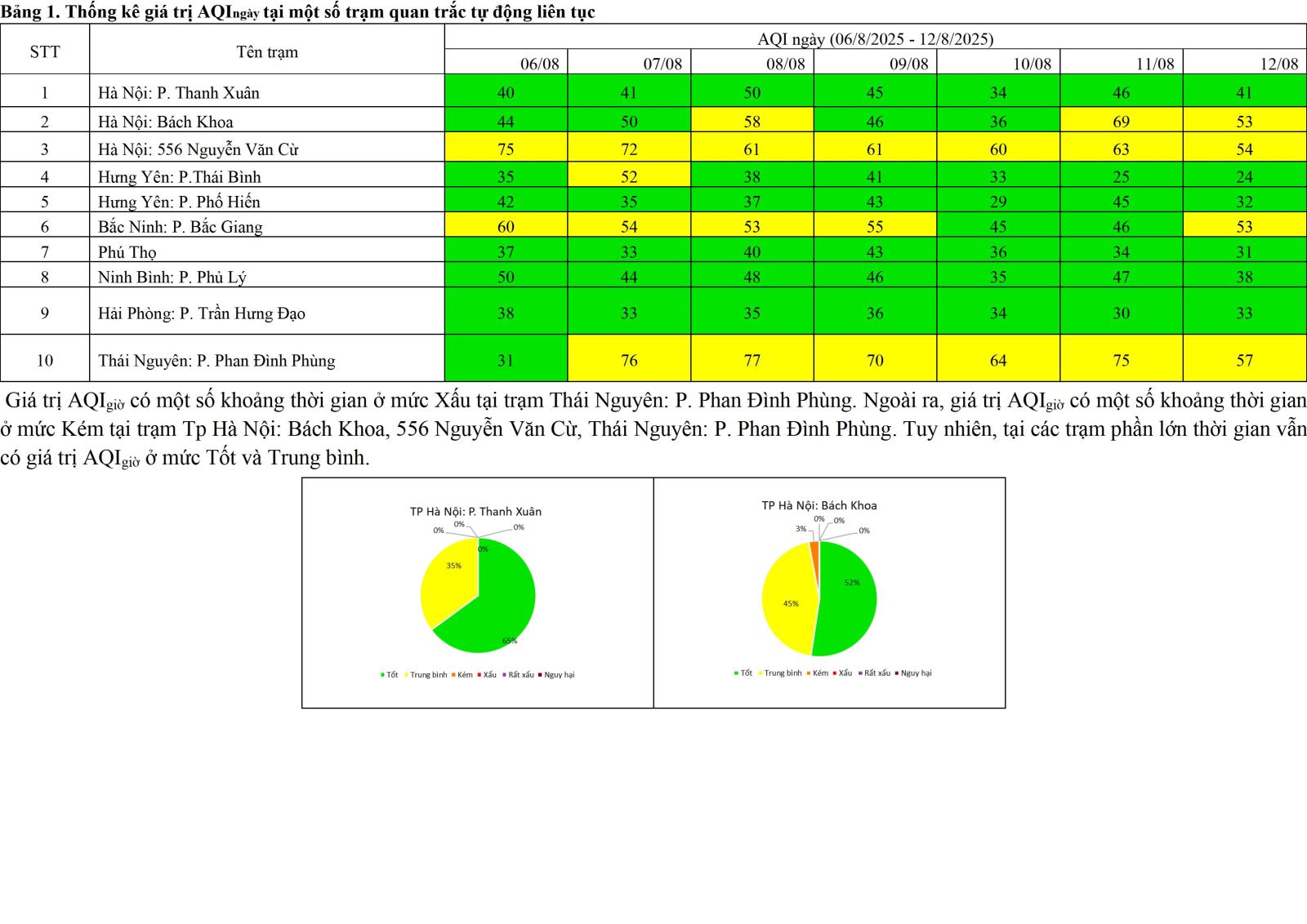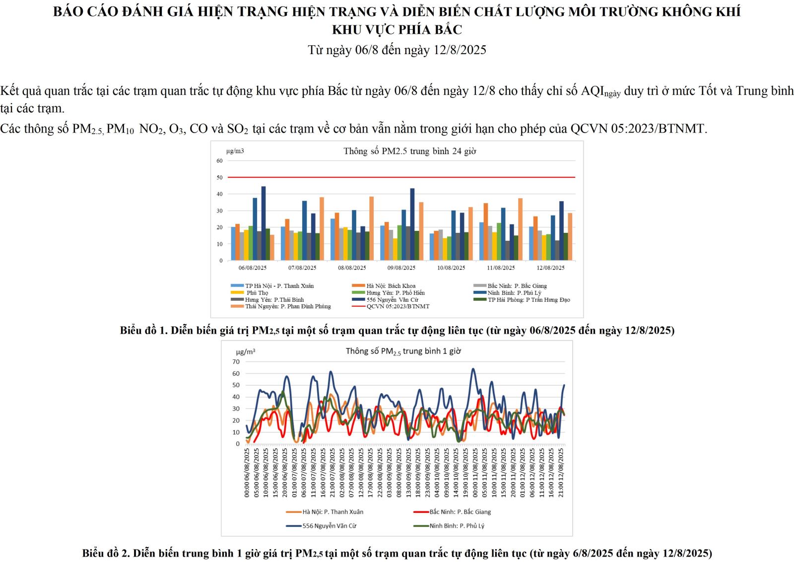 BÁO CÁO ĐÁNH GIÁ HIỆN TRẠNG HIỆN TRẠNG VÀ DIỄN BIẾN CHẤT LƯỢNG MÔI TRƯỜNG KHÔNG KHÍ KHU VỰC PHÍA BẮC Từ ngày 06/8 đến ngày 12/8/2025