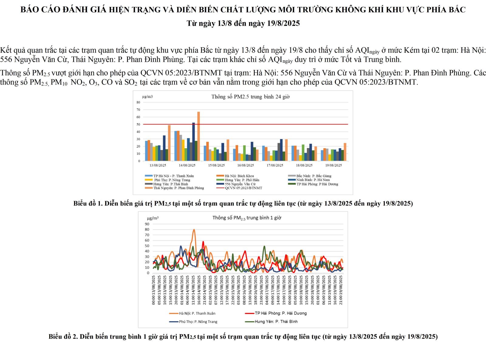 BÁO CÁO ĐÁNH GIÁ HIỆN TRẠNG VÀ DIỄN BIẾN CHẤT LƯỢNG MÔI TRƯỜNG KHÔNG KHÍ KHU VỰC PHÍA BẮC Từ ngày 13/8 đến ngày 19/8/2025