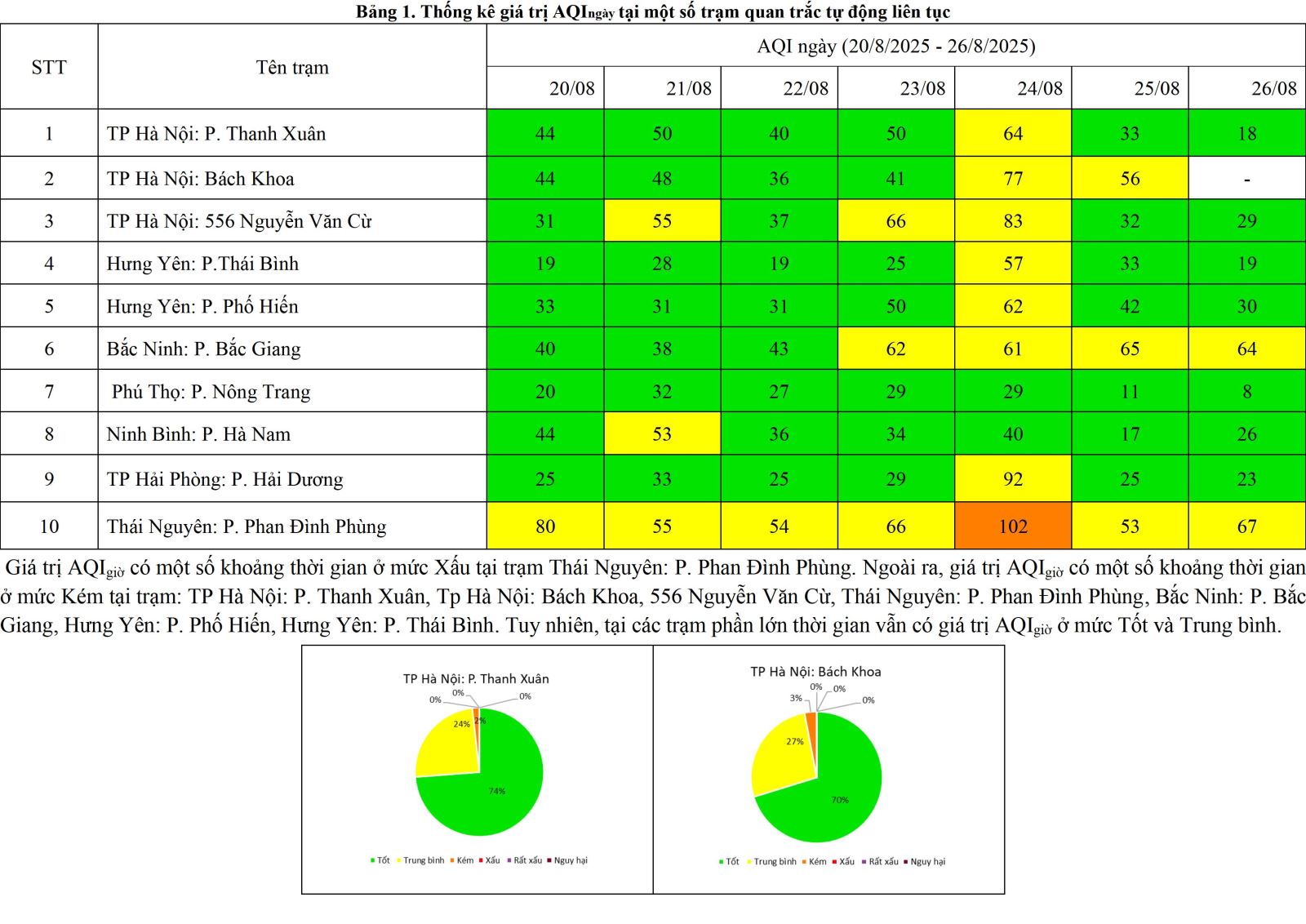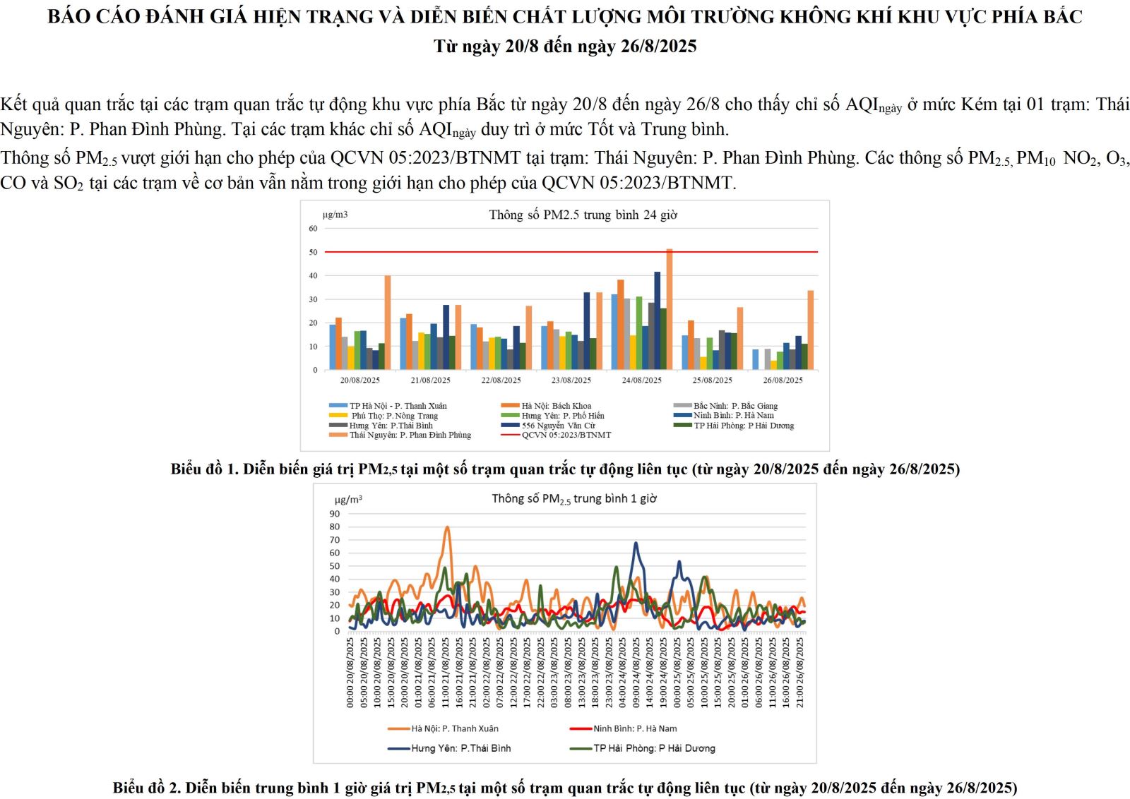 BÁO CÁO ĐÁNH GIÁ HIỆN TRẠNG VÀ DIỄN BIẾN CHẤT LƯỢNG MÔI TRƯỜNG KHÔNG KHÍ KHU VỰC PHÍA BẮC Từ ngày 20/8 đến ngày 26/8/2025