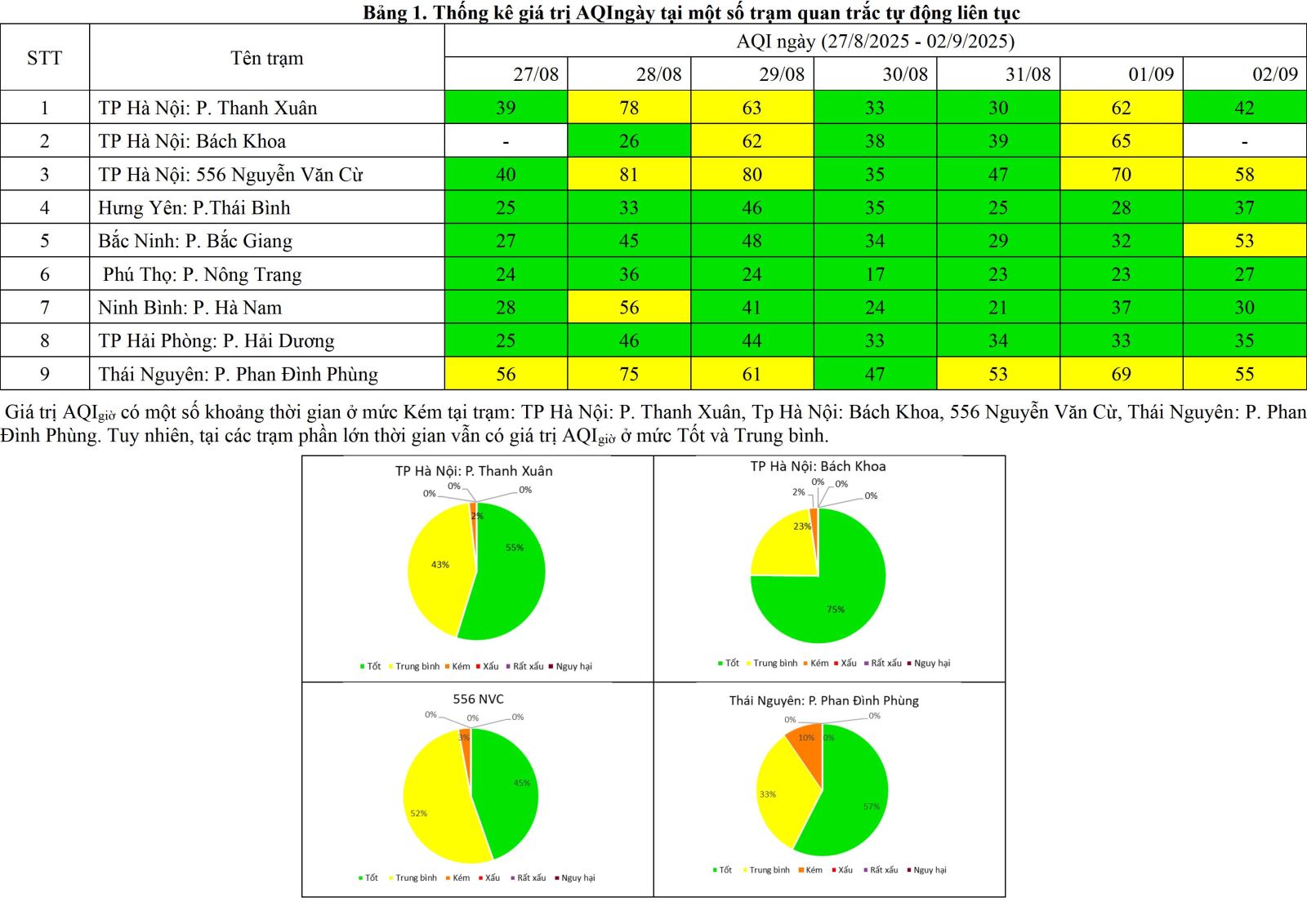 BÁO CÁO ĐÁNH GIÁ HIỆN TRẠNG VÀ DIỄN BIẾN CHẤT LƯỢNG MÔI TRƯỜNG KHÔNG KHÍ KHU VỰC PHÍA BẮC Từ ngày 27/8 đến ngày 02/9/2025