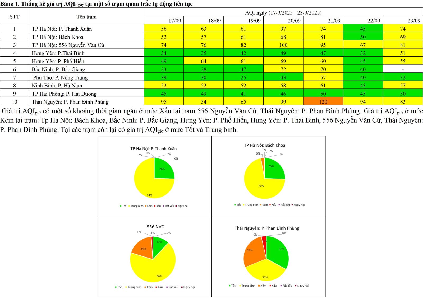 BÁO CÁO ĐÁNH GIÁ HIỆN TRẠNG VÀ DIỄN BIẾN CHẤT LƯỢNG MÔI TRƯỜNG KHÔNG KHÍ KHU VỰC PHÍA BẮC từ ngày 17/9 đến ngày 23/9/2025