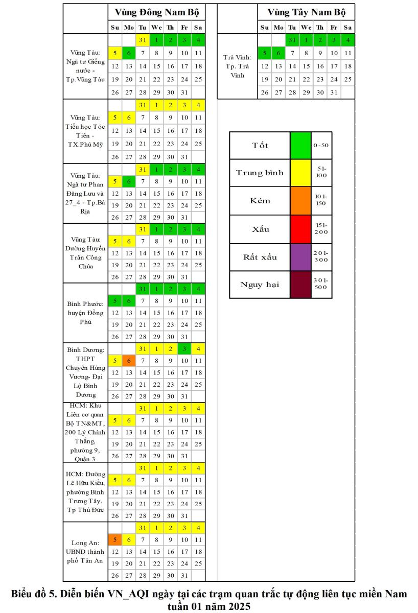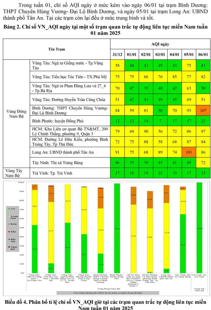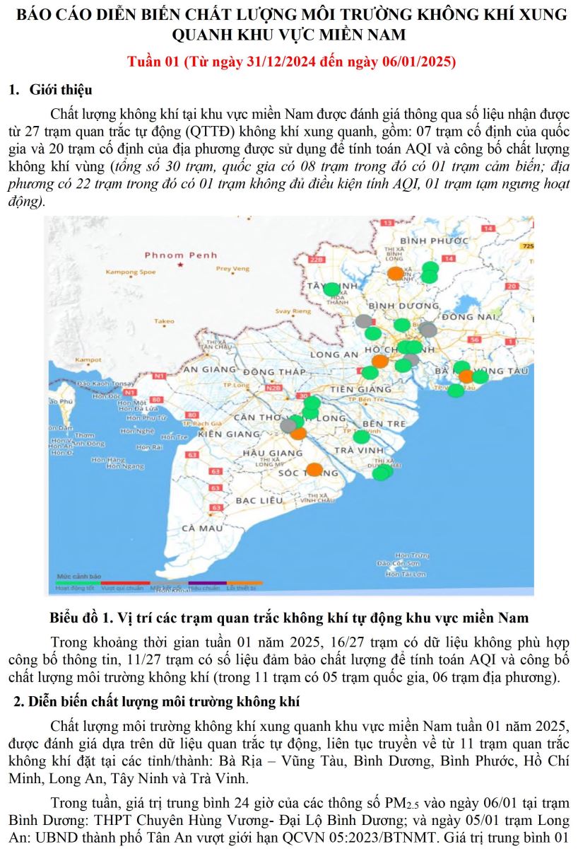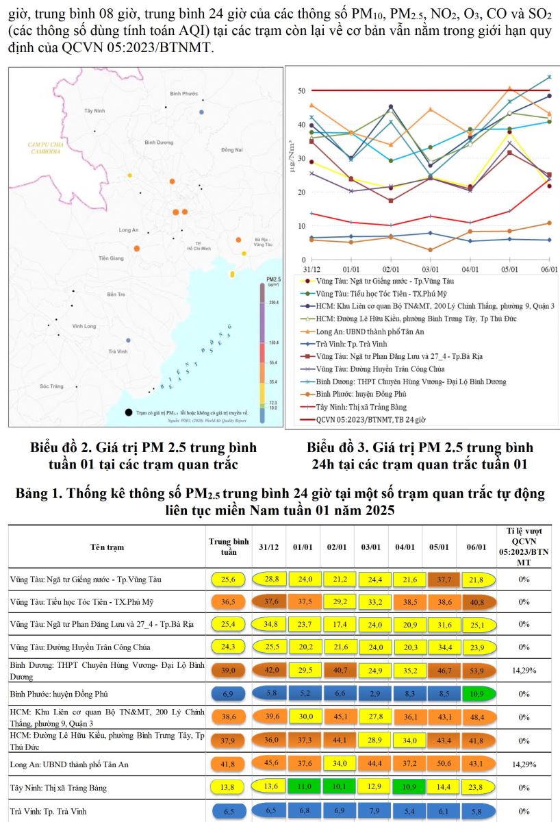 BÁO CÁO DIỄN BIẾN CHẤT LƯỢNG MÔI TRƯỜNG KHÔNG KHÍ XUNG QUANH KHU VỰC MIỀN NAM Tuần 01 (Từ ngày 31/12/2024 đến ngày 06/01/2025)