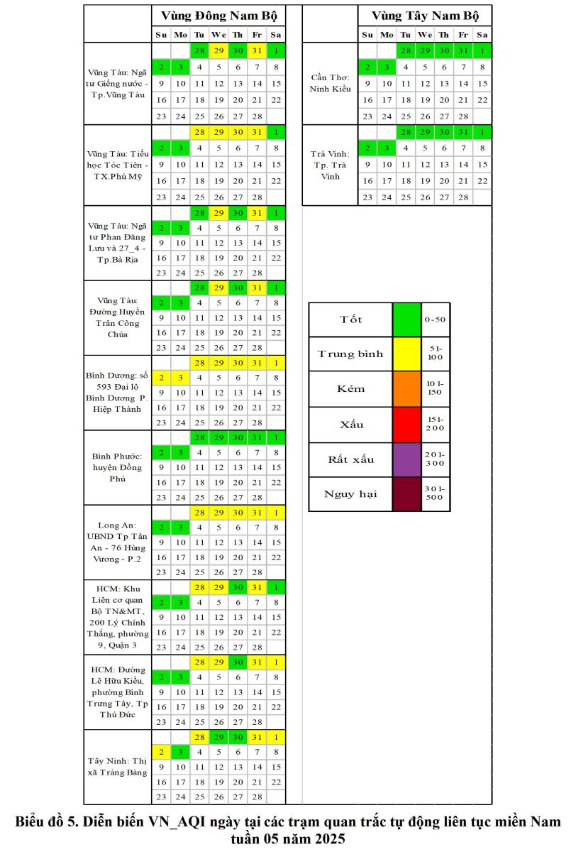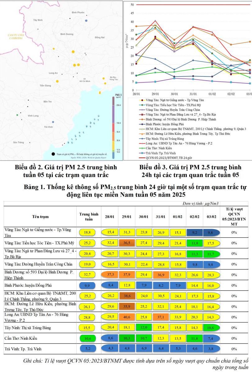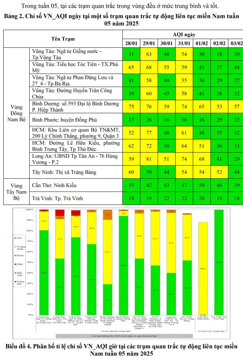 BÁO CÁO DIỄN BIẾN CHẤT LƯỢNG MÔI TRƯỜNG KHÔNG KHÍ XUNG QUANH KHU VỰC MIỀN NAM Tuần 05 (Từ ngày 28/01/2025 đến ngày 03/02/2025)