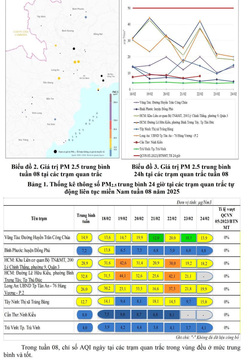 BÁO CÁO DIỄN BIẾN CHẤT LƯỢNG MÔI TRƯỜNG KHÔNG KHÍ XUNG QUANH KHU VỰC MIỀN NAM Tuần 08 (Từ ngày 18/02/2025 đến ngày 24/02/2025)
