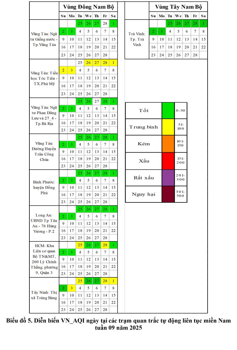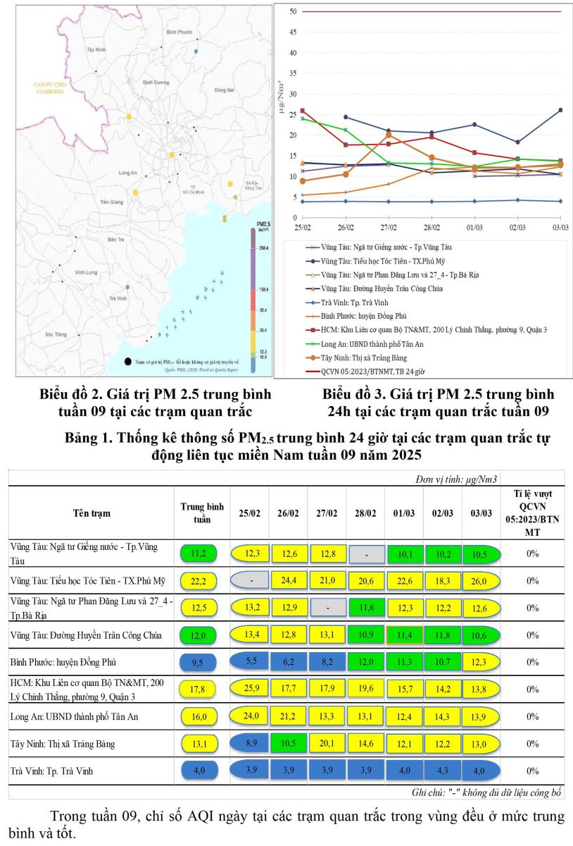 BÁO CÁO DIỄN BIẾN CHẤT LƯỢNG MÔI TRƯỜNG KHÔNG KHÍ XUNG QUANH KHU VỰC MIỀN NAM Tuần 09 (Từ ngày 25/02/2025 đến ngày 03/03/2025)