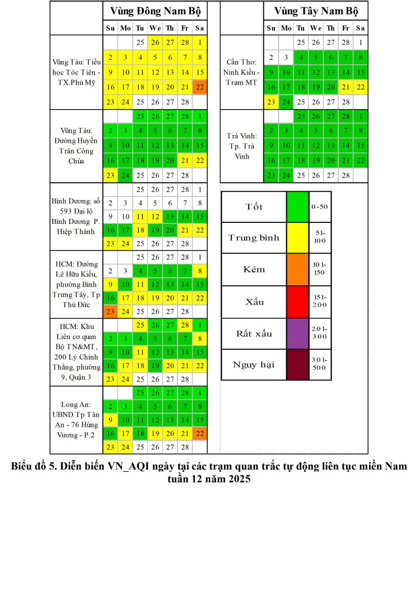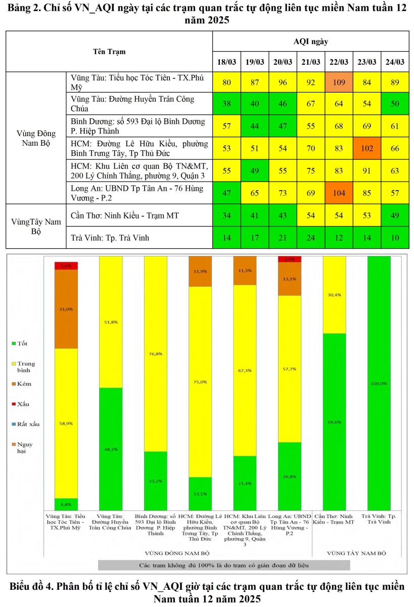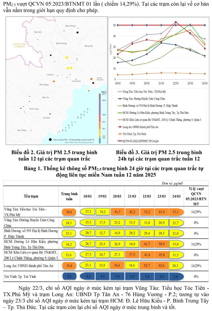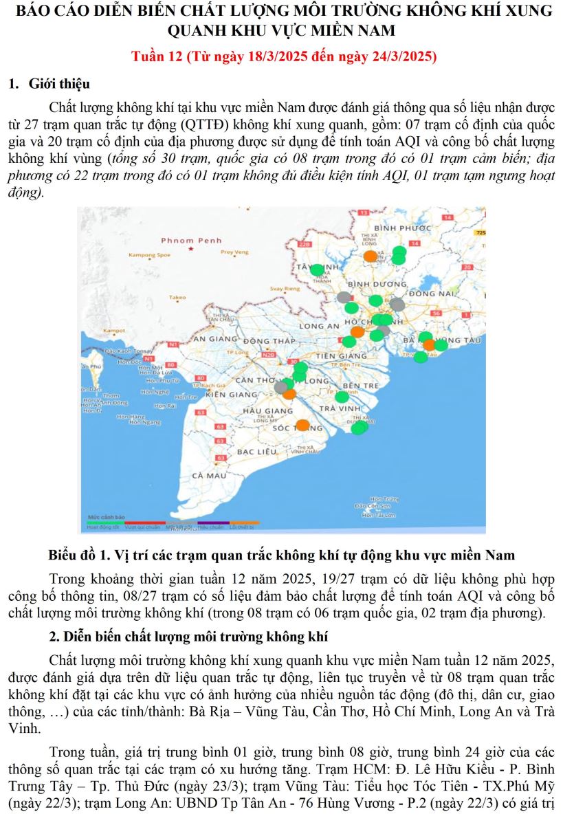 BÁO CÁO DIỄN BIẾN CHẤT LƯỢNG MÔI TRƯỜNG KHÔNG KHÍ XUNG QUANH KHU VỰC MIỀN NAM Tuần 12 (Từ ngày 18/3/2025 đến ngày 24/3/2025)