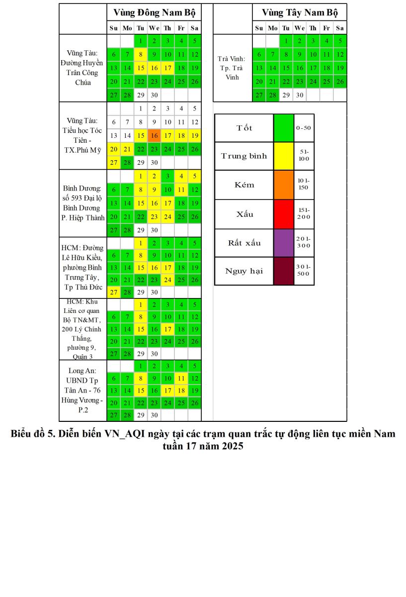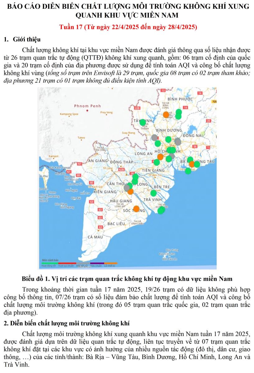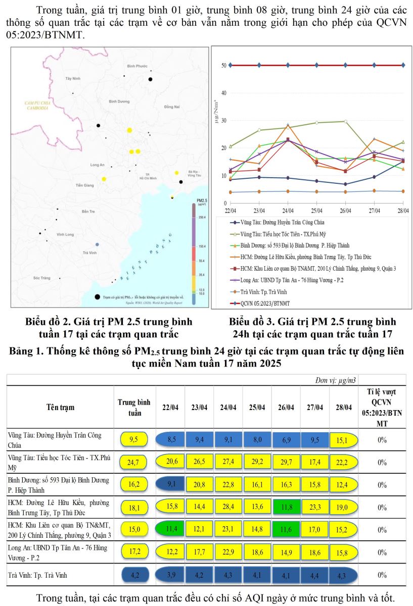 BÁO CÁO DIỄN BIẾN CHẤT LƯỢNG MÔI TRƯỜNG KHÔNG KHÍ XUNG QUANH KHU VỰC MIỀN NAM Tuần 17 (Từ ngày 22/4/2025 đến ngày 28/4/2025)