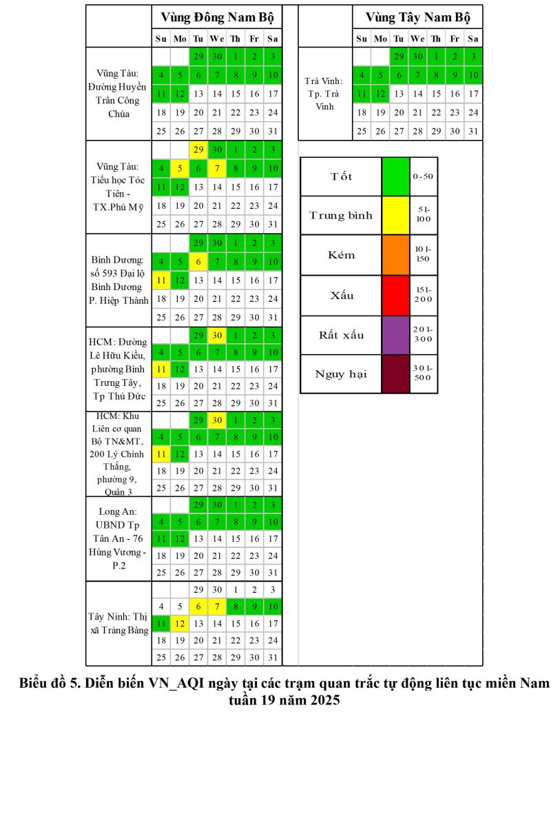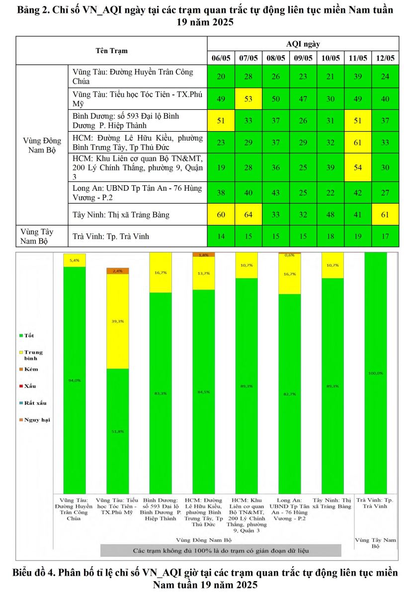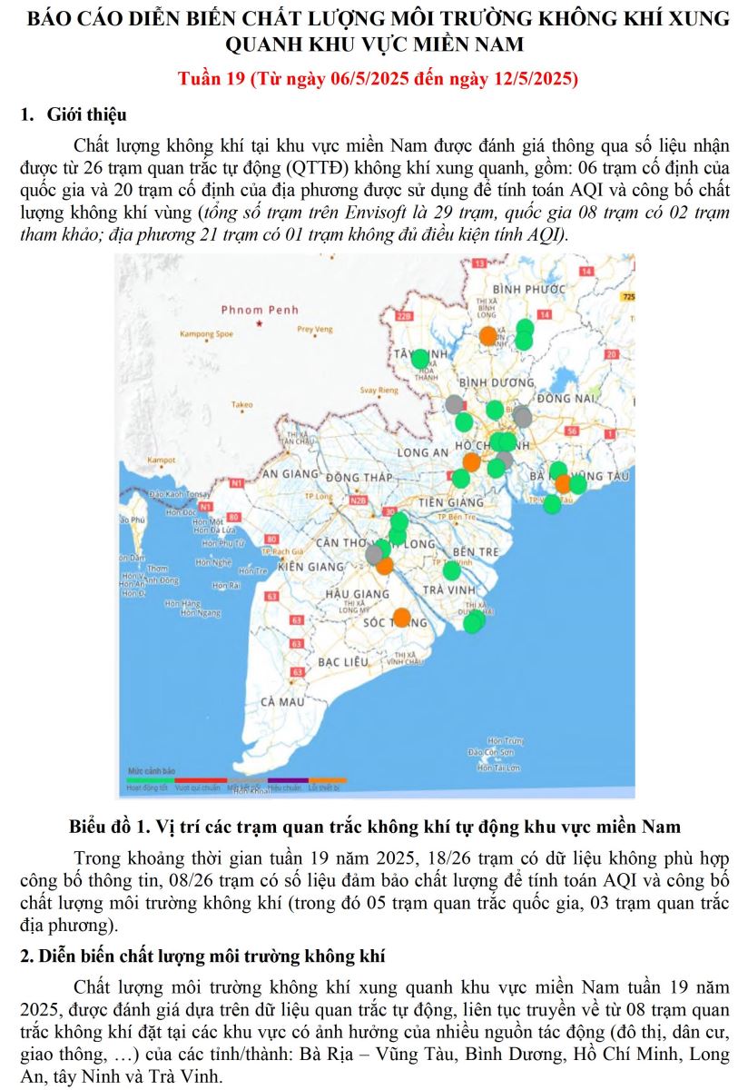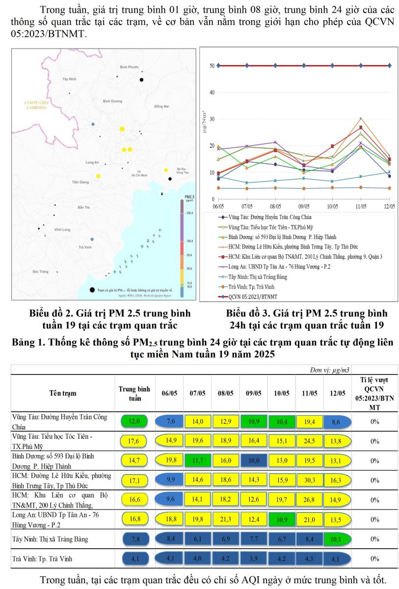BÁO CÁO DIỄN BIẾN CHẤT LƯỢNG MÔI TRƯỜNG KHÔNG KHÍ XUNG QUANH KHU VỰC MIỀN NAM Tuần 19 (Từ ngày 06/5/2025 đến ngày 12/5/2025)