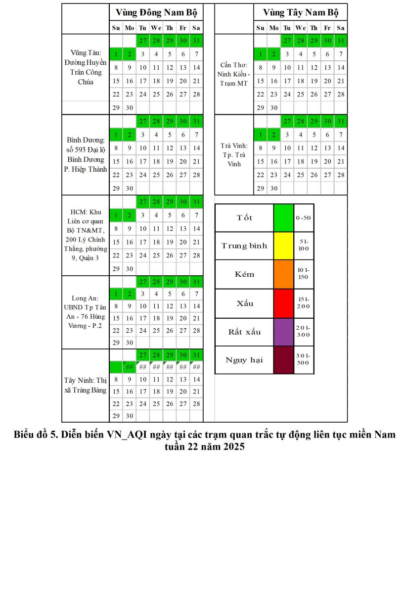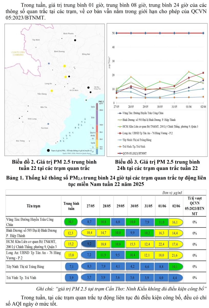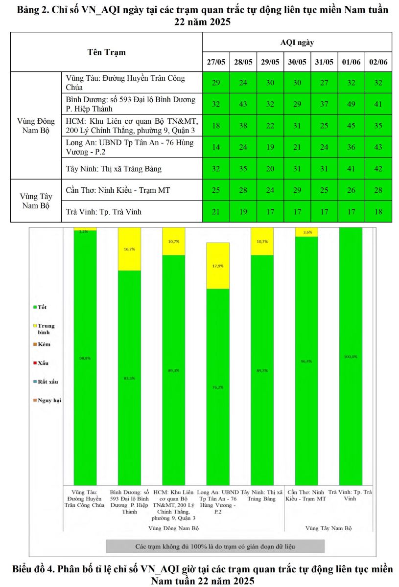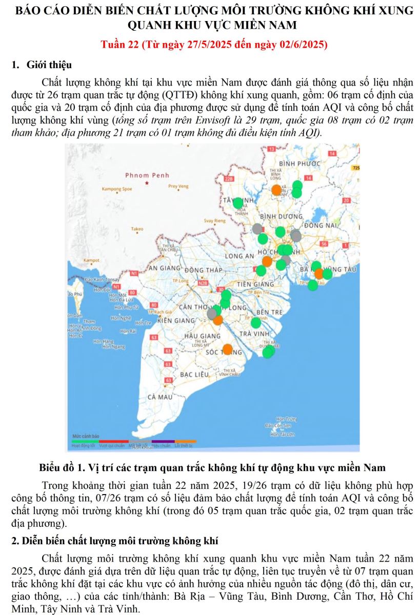 BÁO CÁO DIỄN BIẾN CHẤT LƯỢNG MÔI TRƯỜNG KHÔNG KHÍ XUNG QUANH KHU VỰC MIỀN NAM Tuần 22 (Từ ngày 27/5/2025 đến ngày 02/6/2025)