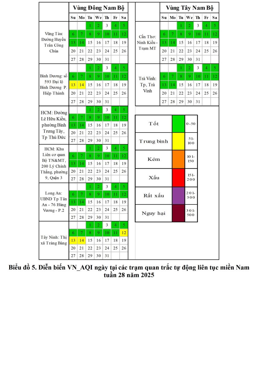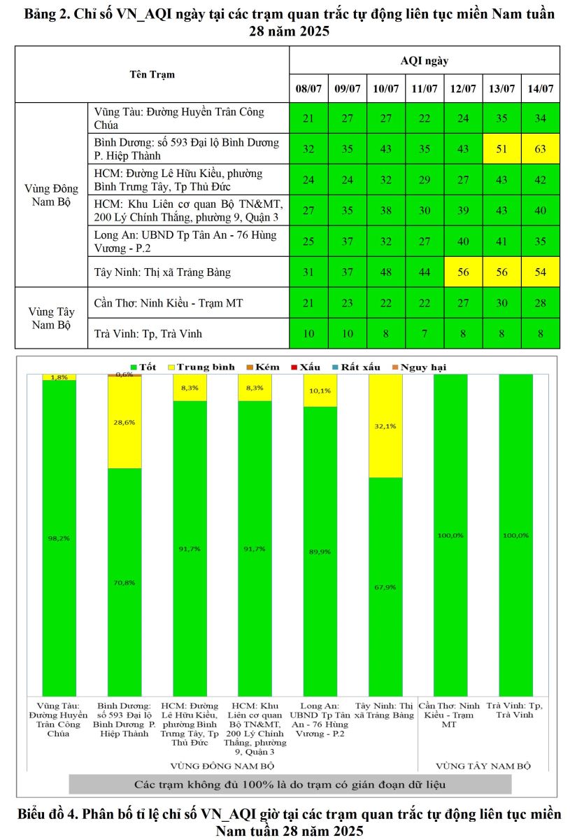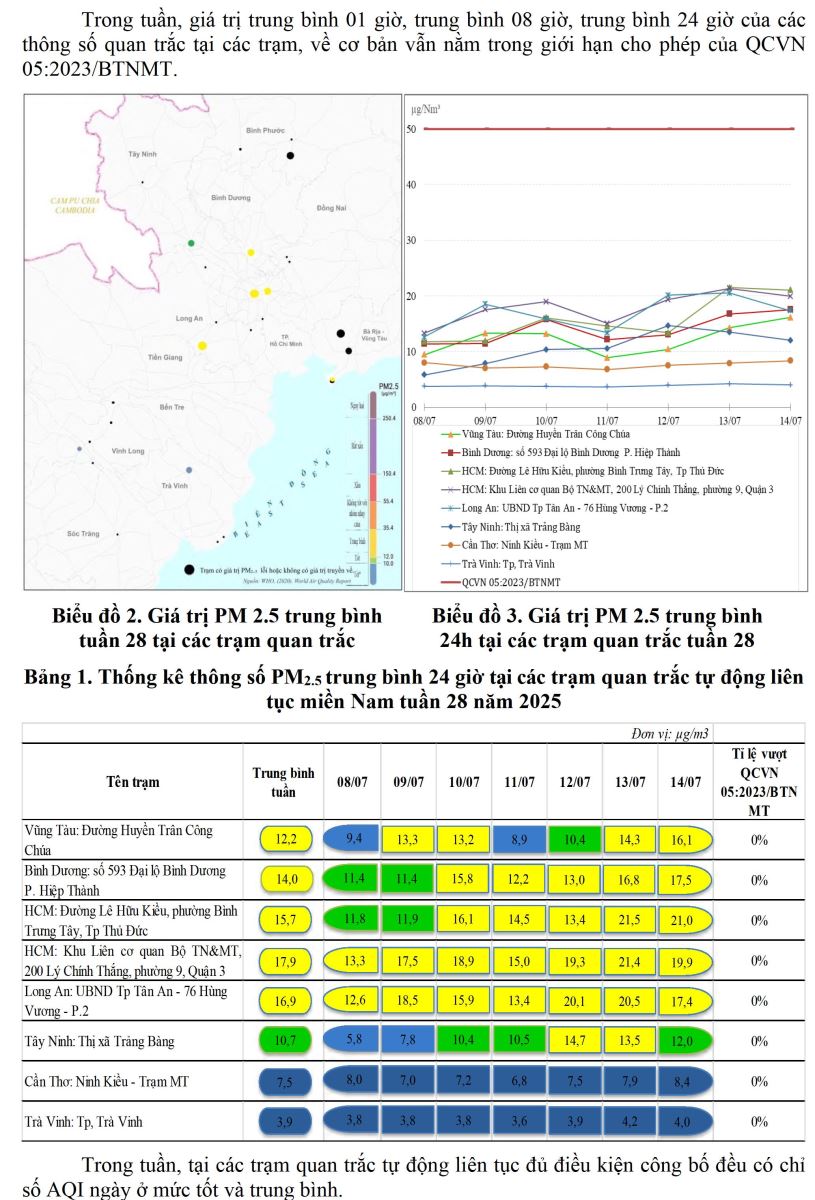 BÁO CÁO DIỄN BIẾN CHẤT LƯỢNG MÔI TRƯỜNG KHÔNG KHÍ XUNG QUANH KHU VỰC MIỀN NAM Tuần 28 (Từ ngày 08/7/2025 đến ngày 14/7/2025)