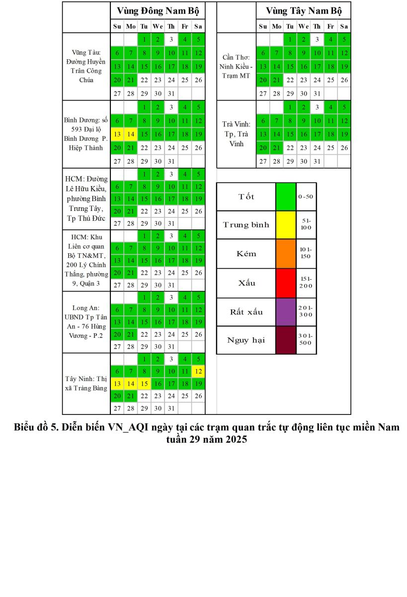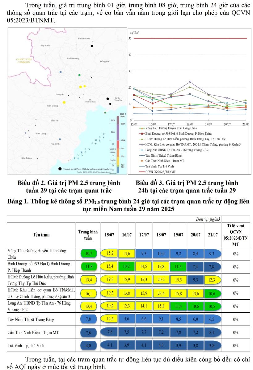 BÁO CÁO DIỄN BIẾN CHẤT LƯỢNG MÔI TRƯỜNG KHÔNG KHÍ XUNG QUANH KHU VỰC MIỀN NAM Tuần 29 (Từ ngày 15/7/2025 đến ngày 21/7/2025)