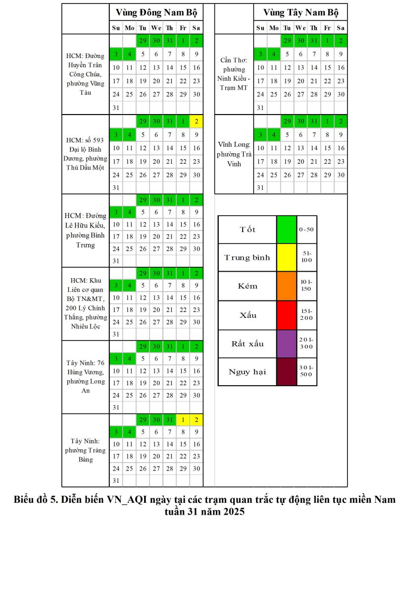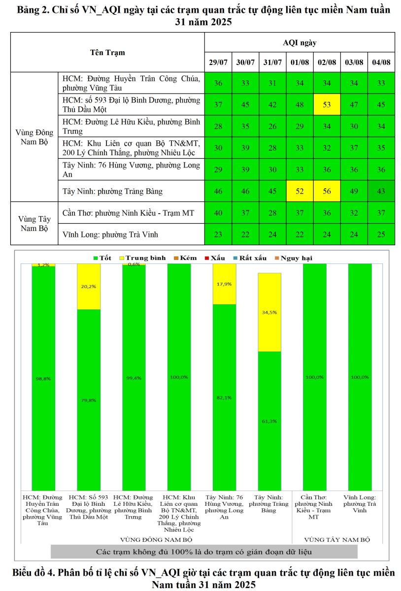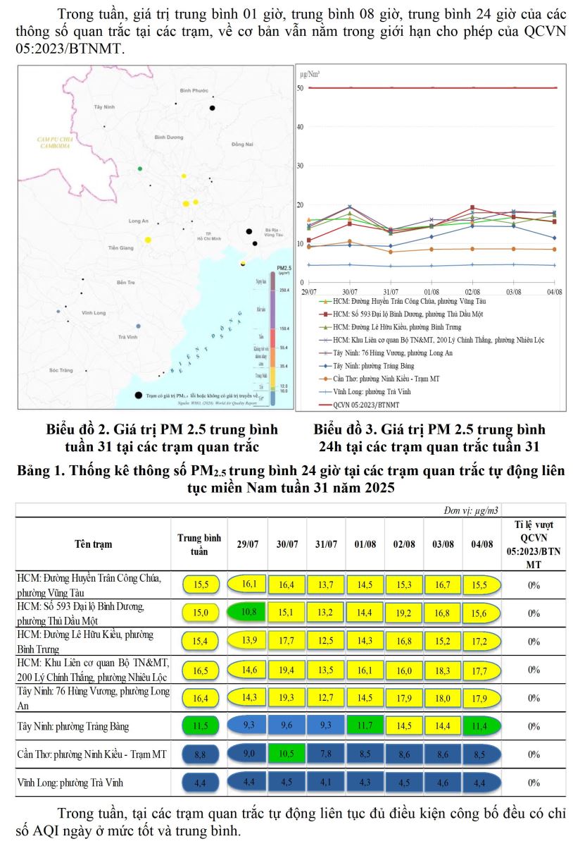BÁO CÁO DIỄN BIẾN CHẤT LƯỢNG MÔI TRƯỜNG KHÔNG KHÍ XUNG QUANH KHU VỰC MIỀN NAM Tuần 31 (Từ ngày 29/7/2025 đến ngày 04/8/2025)
