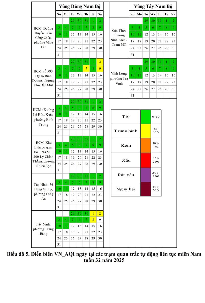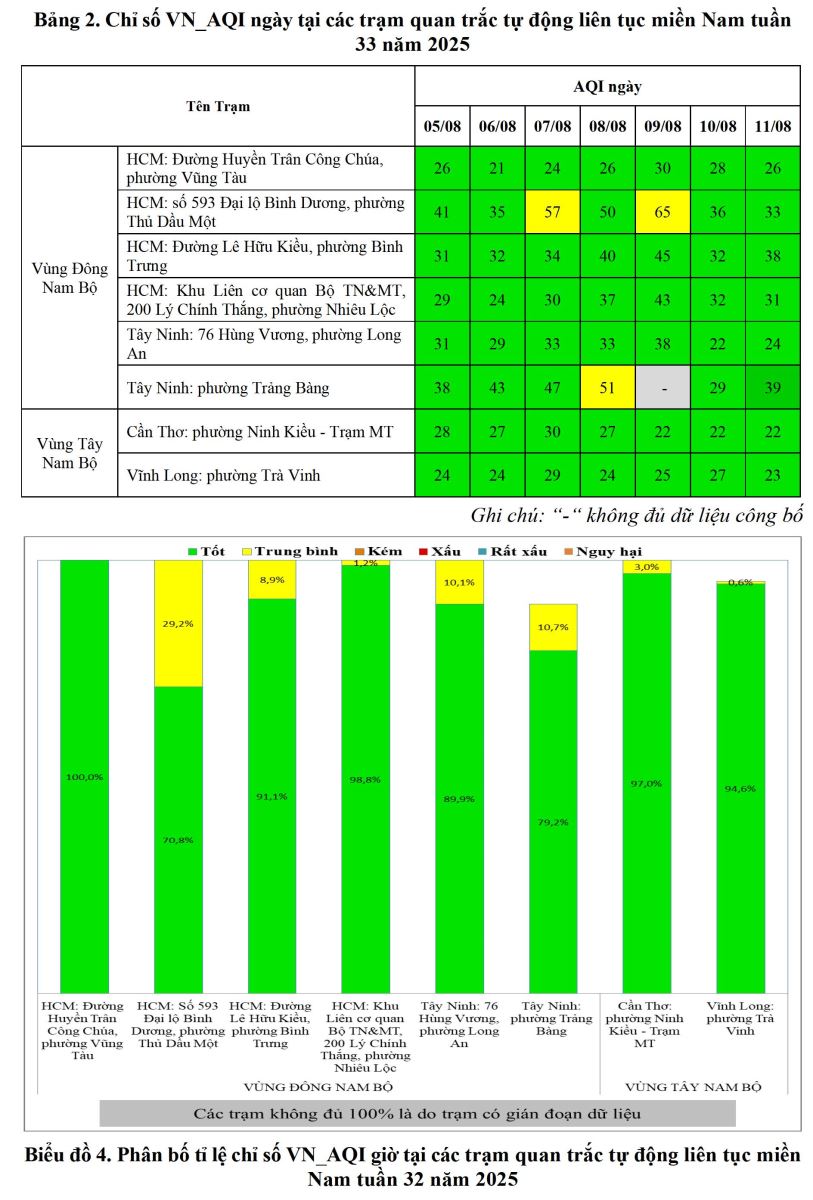 BÁO CÁO DIỄN BIẾN CHẤT LƯỢNG MÔI TRƯỜNG KHÔNG KHÍ XUNG QUANH KHU VỰC MIỀN NAM Tuần 33 (Từ ngày 12/8/2025 đến ngày 18/8/2025)