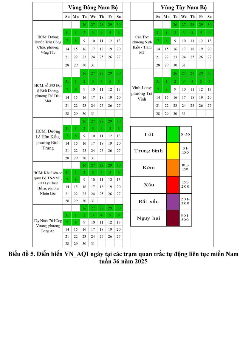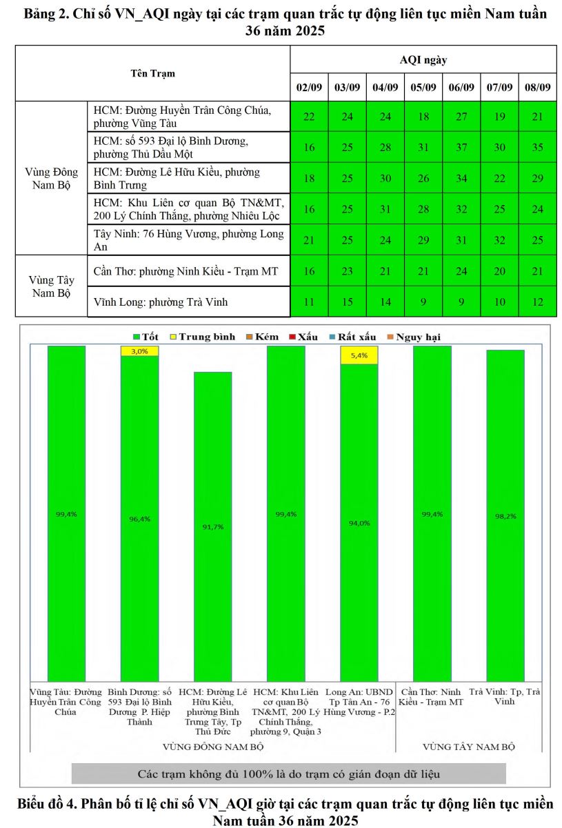 BÁO CÁO DIỄN BIẾN CHẤT LƯỢNG MÔI TRƯỜNG KHÔNG KHÍ XUNG QUANH KHU VỰC MIỀN NAM Tuần 36 (Từ ngày 02/9/2025 đến ngày 08/9/2025)