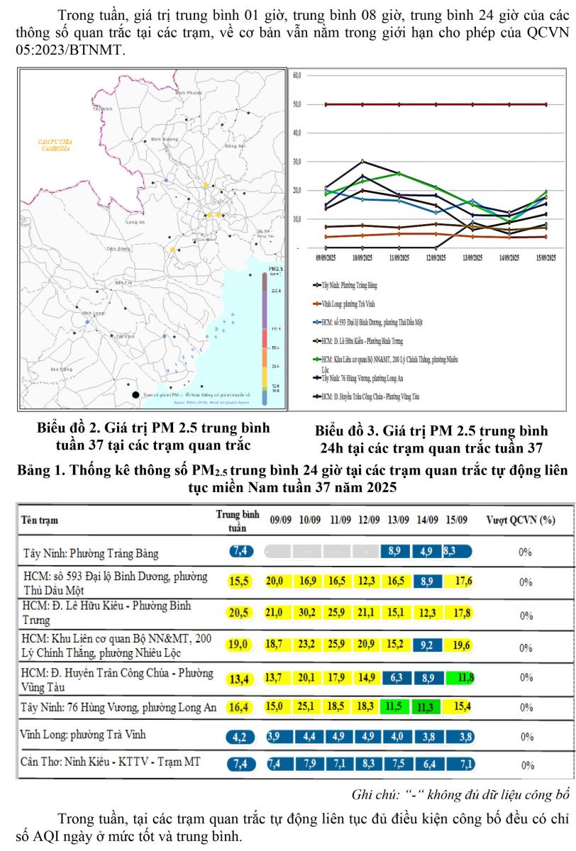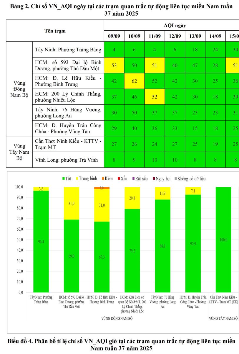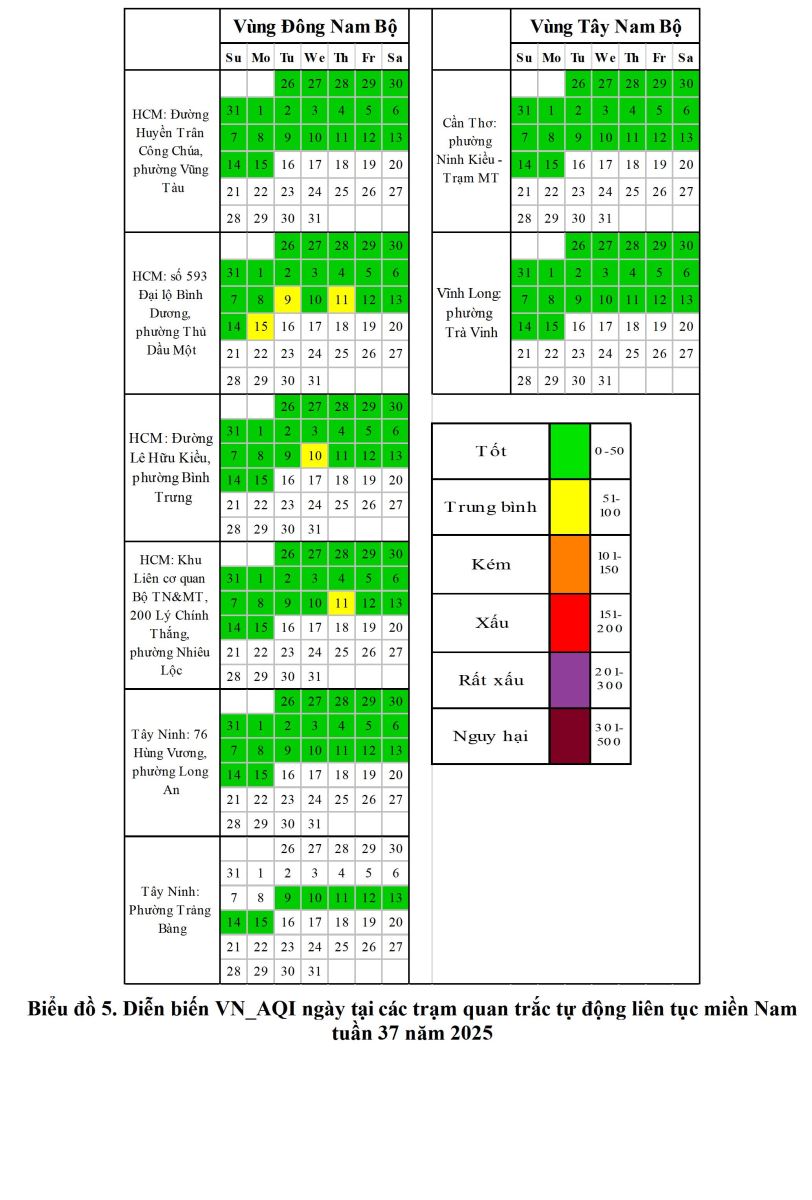 BÁO CÁO DIỄN BIẾN CHẤT LƯỢNG MÔI TRƯỜNG KHÔNG KHÍ XUNG QUANH KHU VỰC MIỀN NAM Tuần 37 (Từ ngày 09/09/2025 đến ngày 15/09/2025)