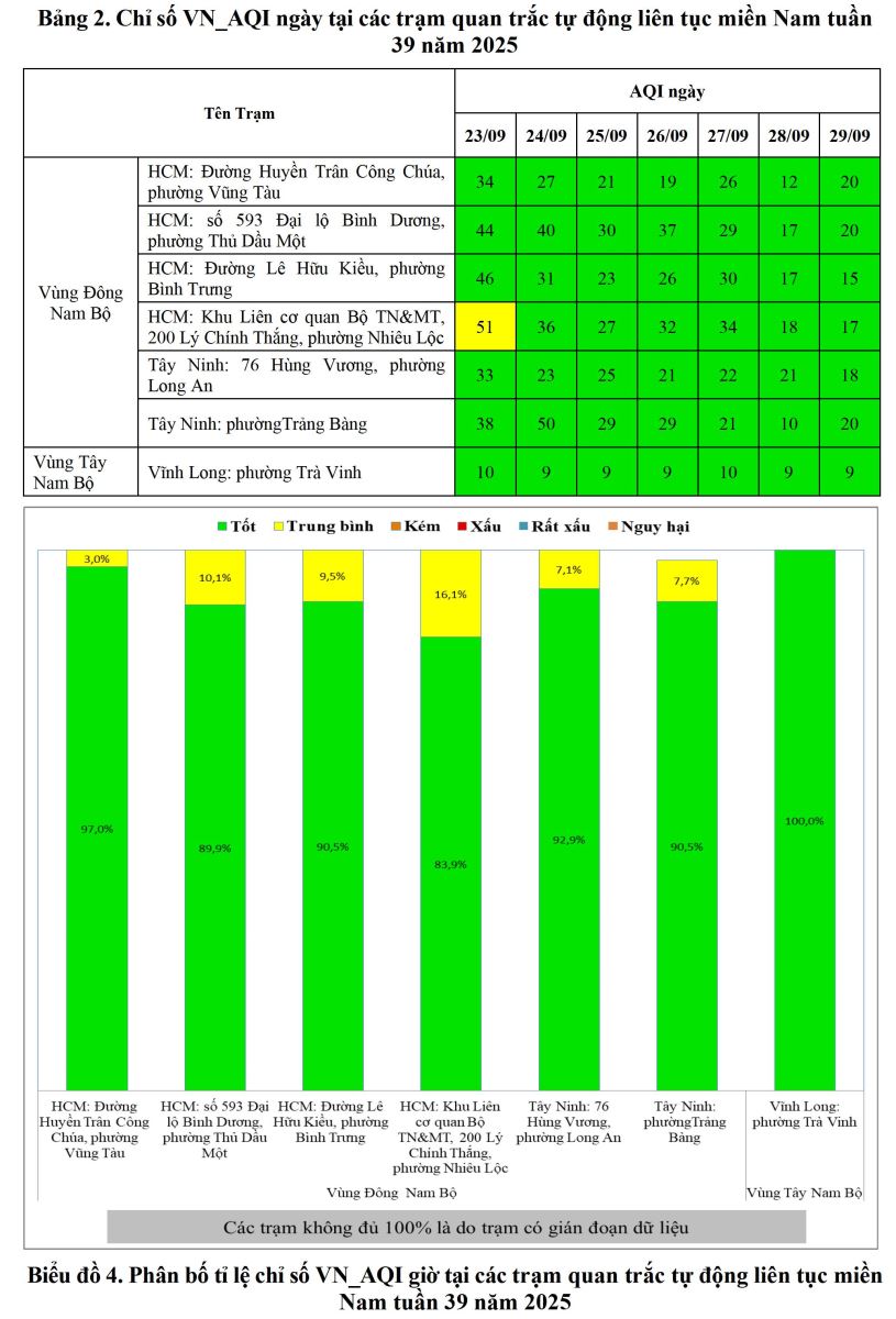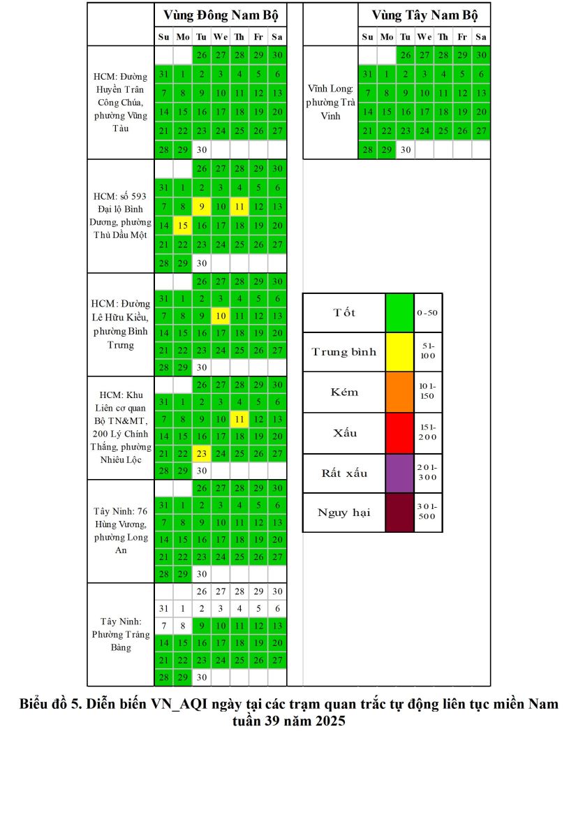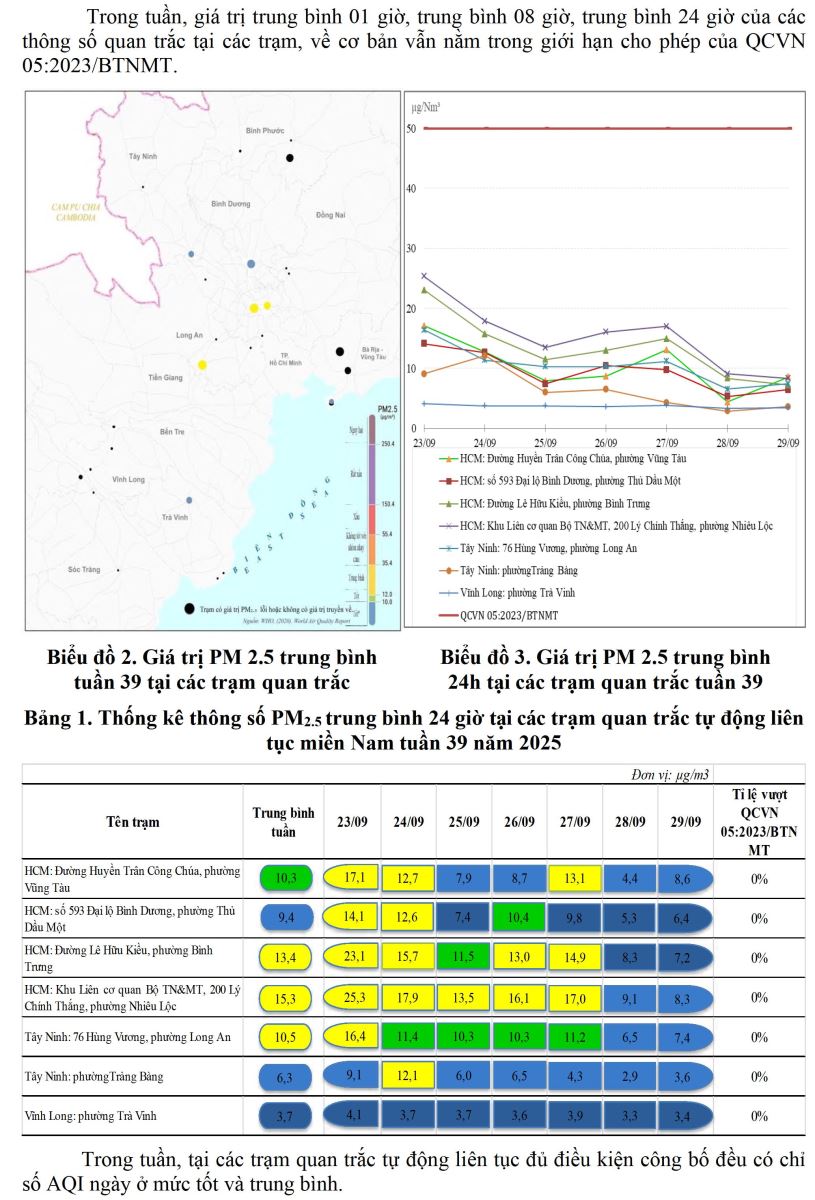 BÁO CÁO DIỄN BIẾN CHẤT LƯỢNG MÔI TRƯỜNG KHÔNG KHÍ XUNG QUANH KHU VỰC MIỀN NAM Tuần 39 (Từ ngày 23/09/2025 đến ngày 29/09/2025)