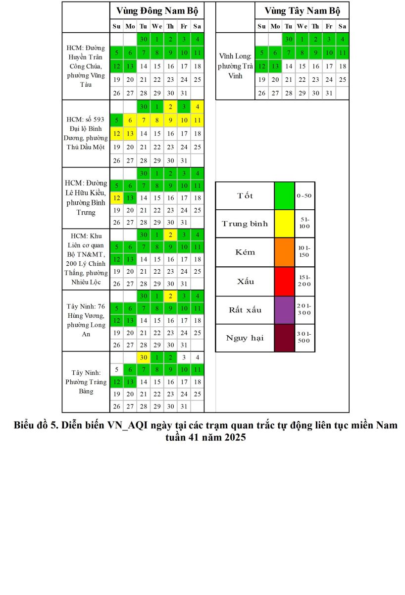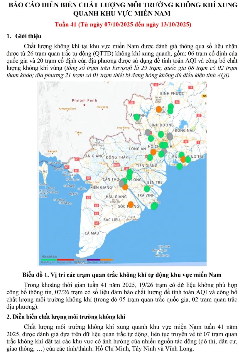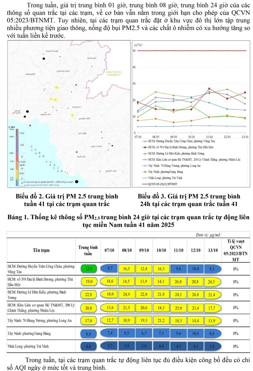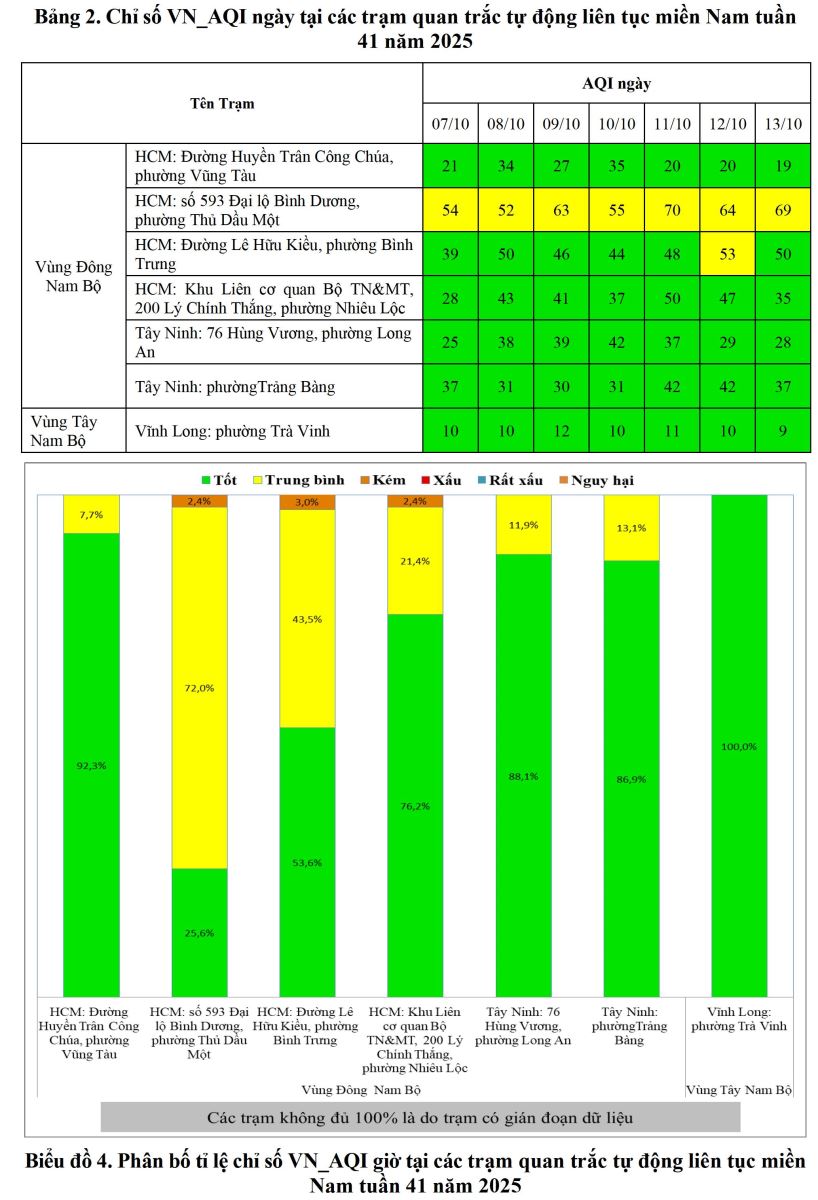 BÁO CÁO DIỄN BIẾN CHẤT LƯỢNG MÔI TRƯỜNG KHÔNG KHÍ XUNG QUANH KHU VỰC MIỀN NAM Tuần 41 (Từ ngày 07/10/2025 đến ngày 13/10/2025)