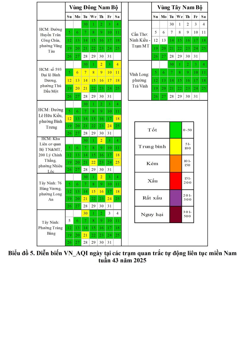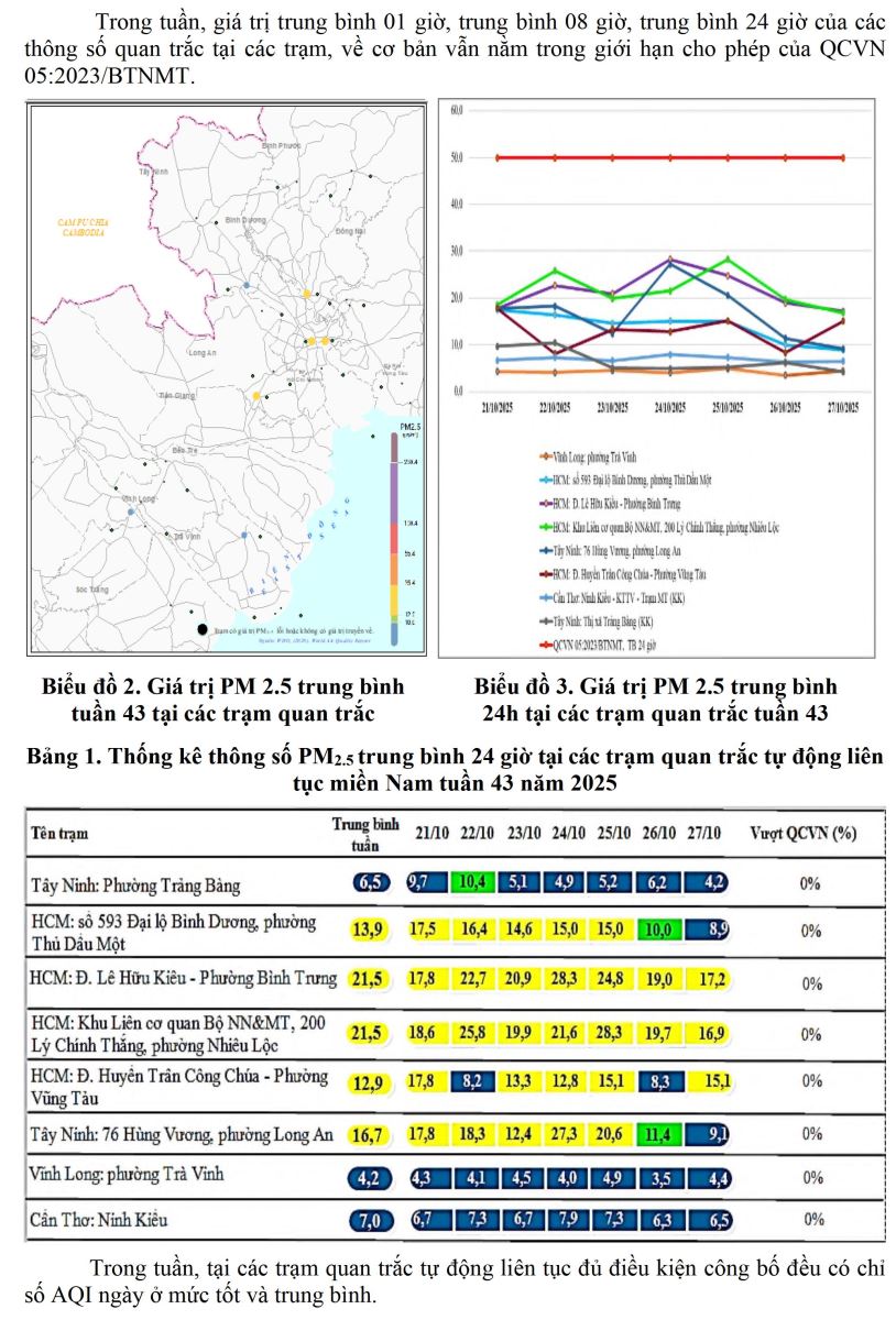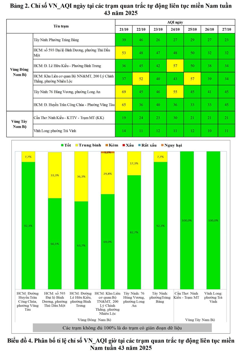 BÁO CÁO DIỄN BIẾN CHẤT LƯỢNG MÔI TRƯỜNG KHÔNG KHÍ XUNG QUANH KHU VỰC MIỀN NAM Tuần 43 (Từ ngày 21/10/2025 đến ngày 27/10/2025)