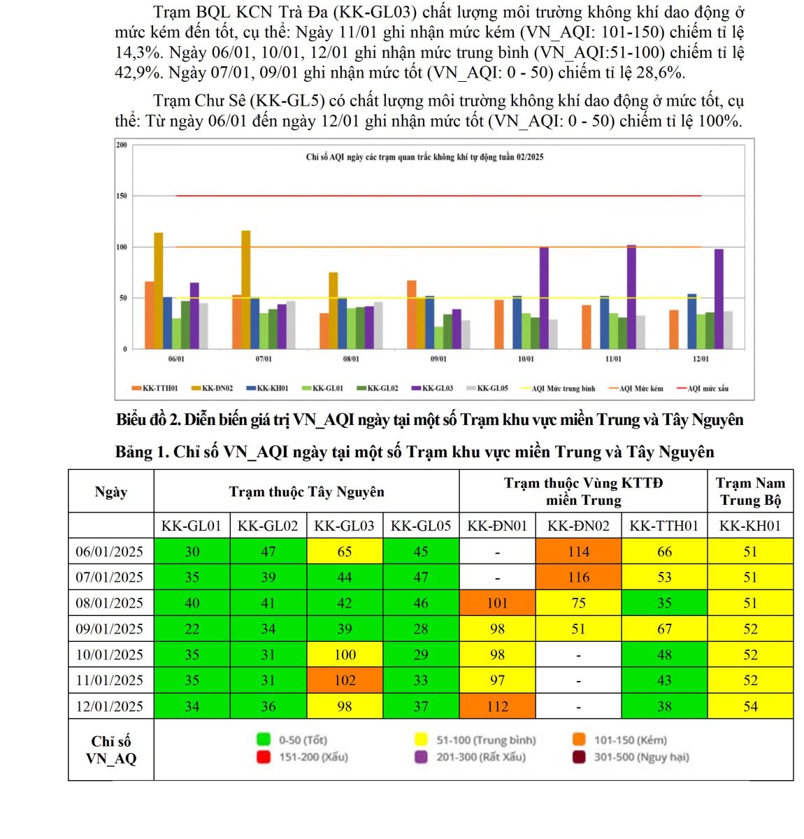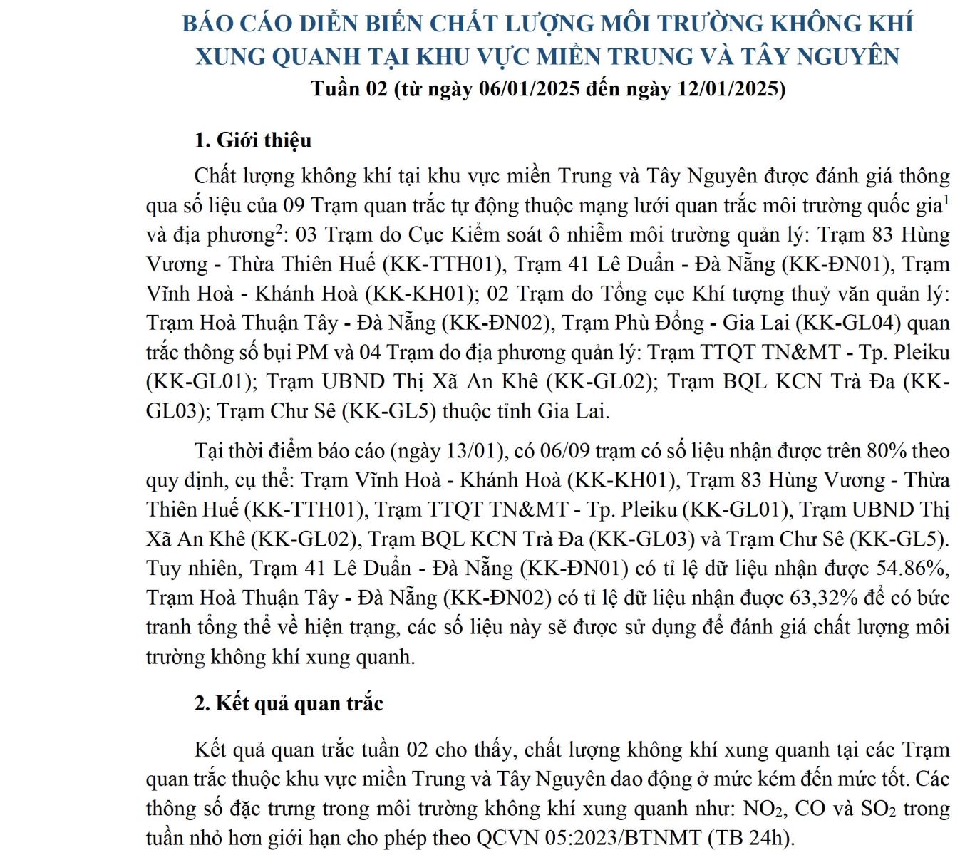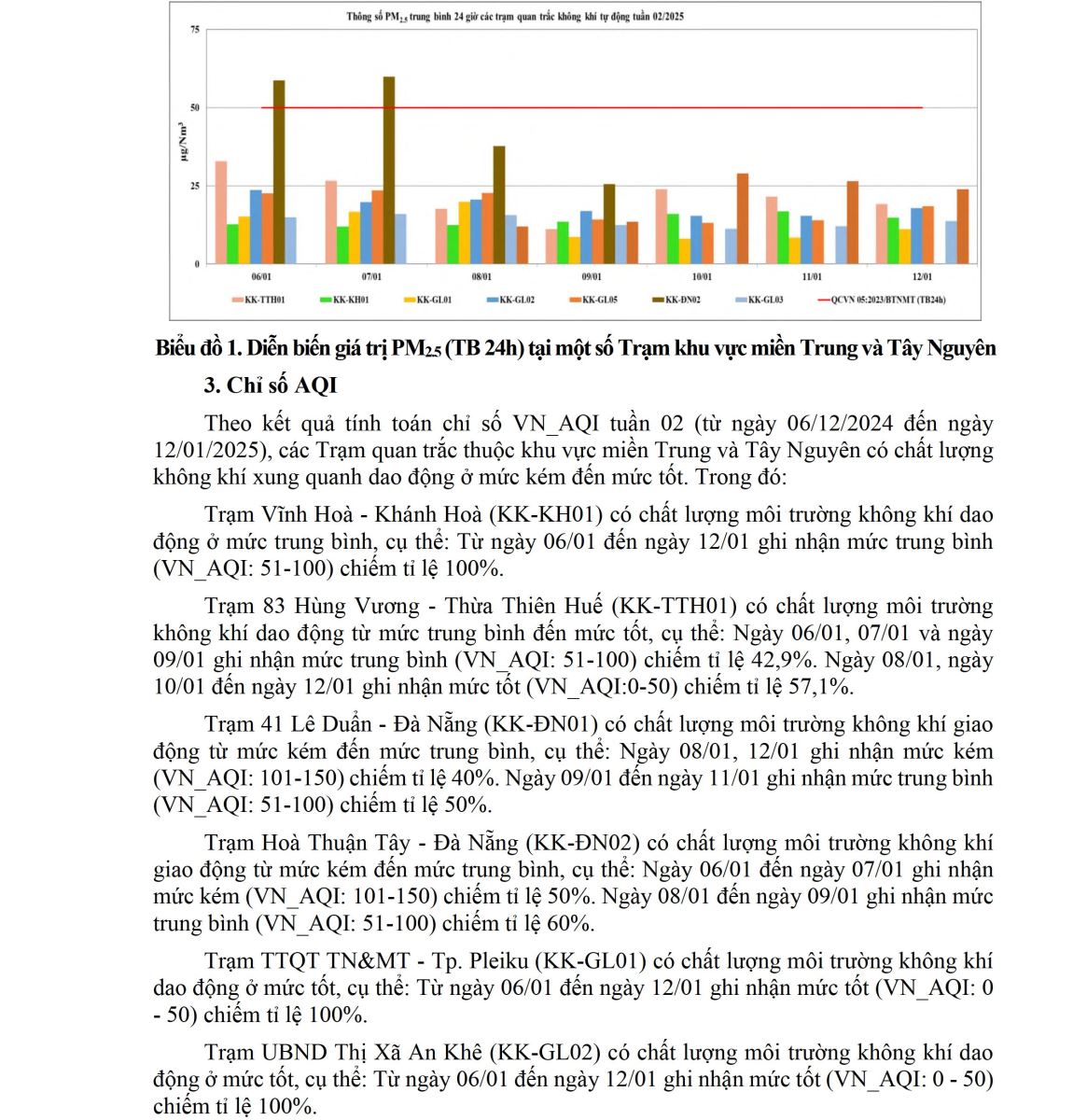 BÁO CÁO DIỄN BIẾN CHẤT LƯỢNG MÔI TRƯỜNG KHÔNG KHÍ XUNG QUANH TẠI KHU VỰC MIỀN TRUNG VÀ TÂY NGUYÊN Tuần 02 (từ ngày 06/01/2025 đến ngày 12/01/2025)