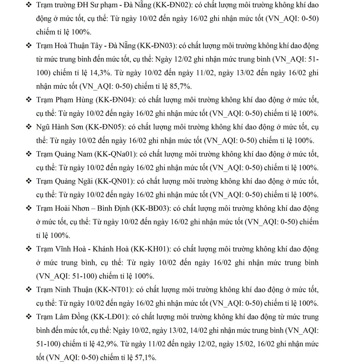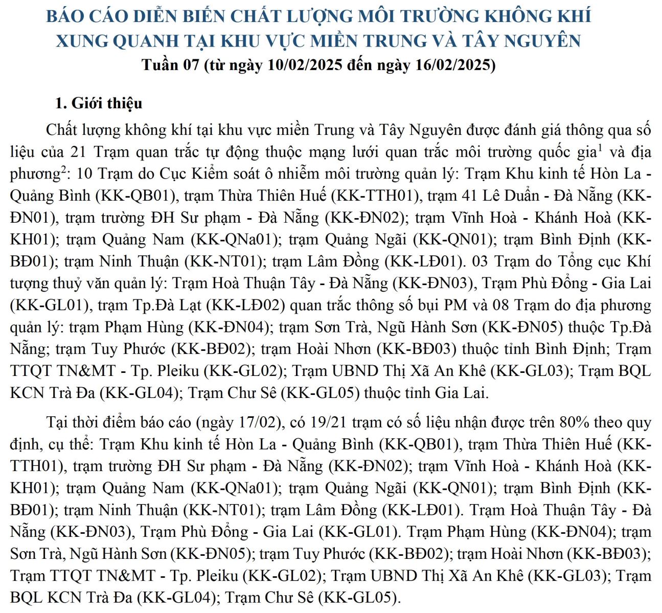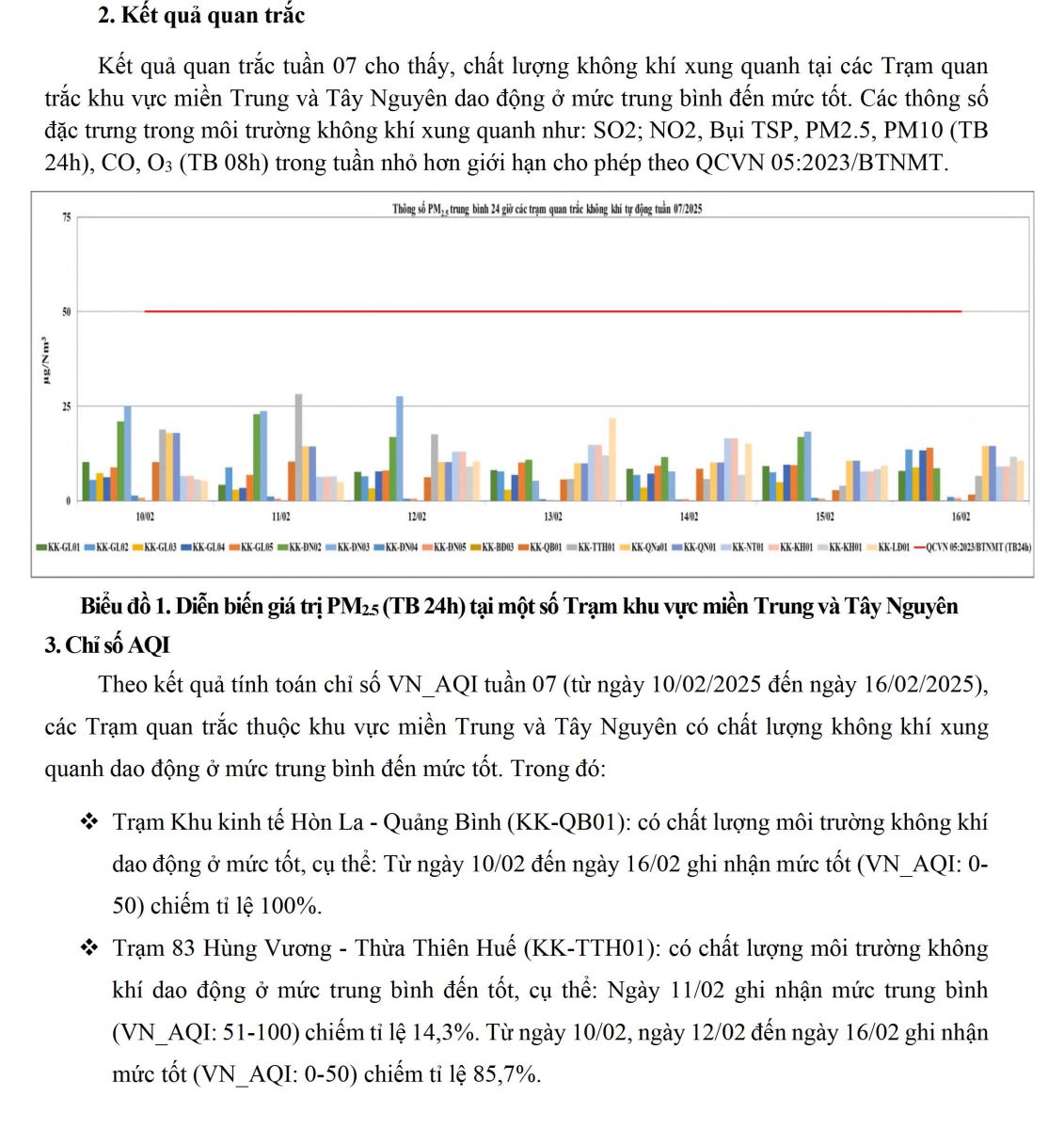 BÁO CÁO DIỄN BIẾN CHẤT LƯỢNG MÔI TRƯỜNG KHÔNG KHÍ XUNG QUANH TẠI KHU v ự c MIỀN TRUNG VÀ TÂY NGUYÊN Tuần 07 (từ ngày 10/02/2025 đến ngày 16/02/2025)