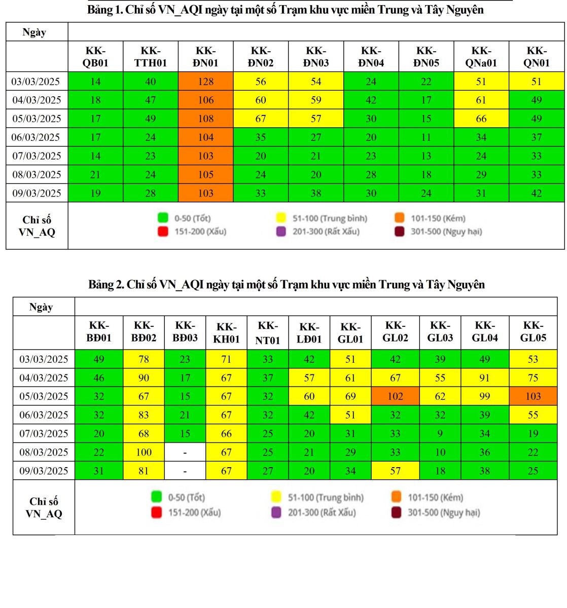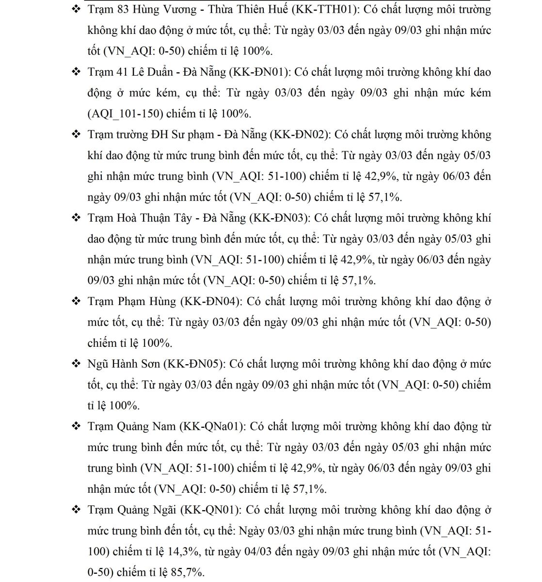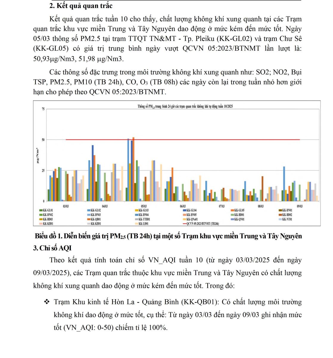 BÁO CÁO DIỄN BIẾN CHẤT LƯỢNG MÔI TRƯỜNG KHÔNG KHÍ XUNG QUANH TẠI KHU VỰC MIỀN TRUNG VÀ TÂY NGUYÊN Tuần 10 (từ ngày 03/03/2025 đến ngày 09/03/2025)