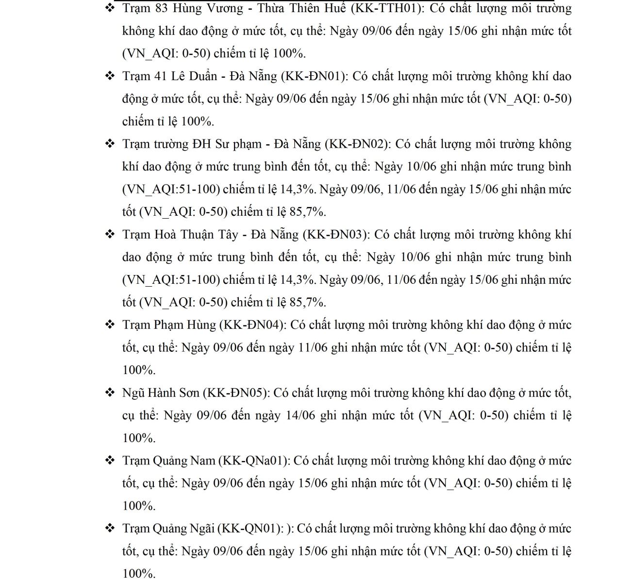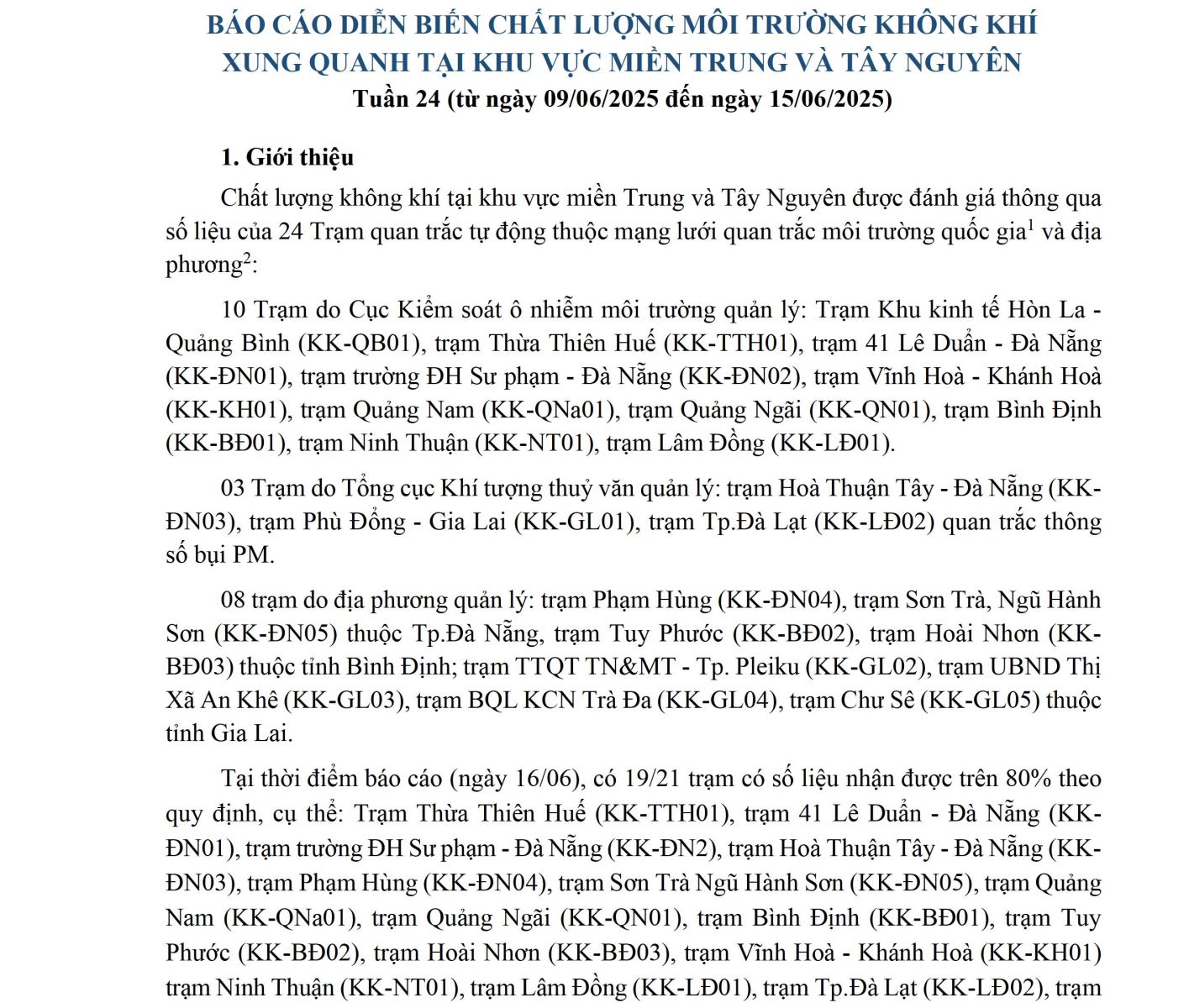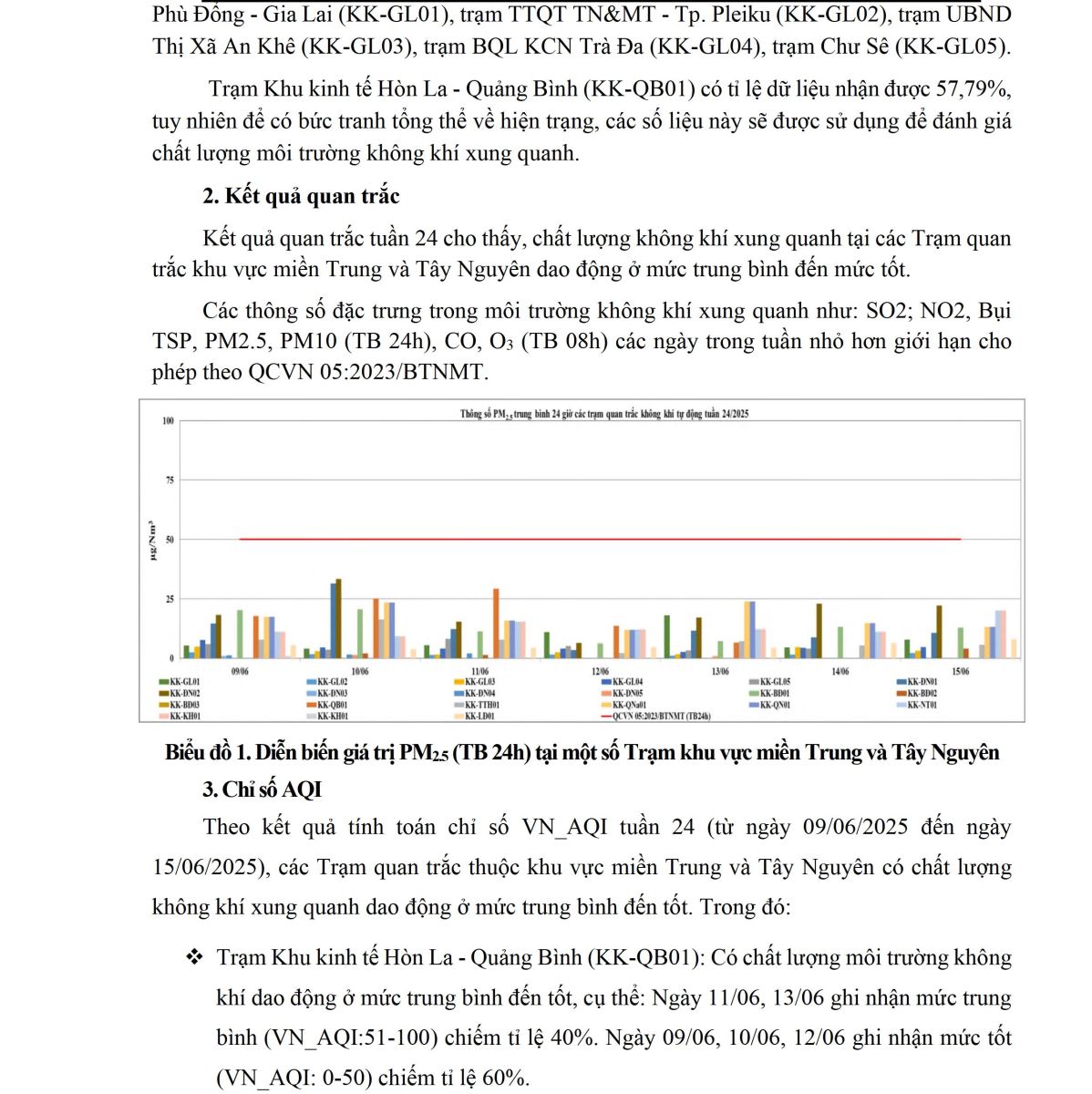BÁO CÁO DIỄN BIẾN CHẤT LƯỢNG MÔI TRƯỜNG KHÔNG KHÍ XUNG QUANH TẠI KHU VỰC MIỀN TRUNG VÀ TÂY NGUYÊN Tuần 24 (từ ngày 09/06/2025 đến ngày 15/06/2025)