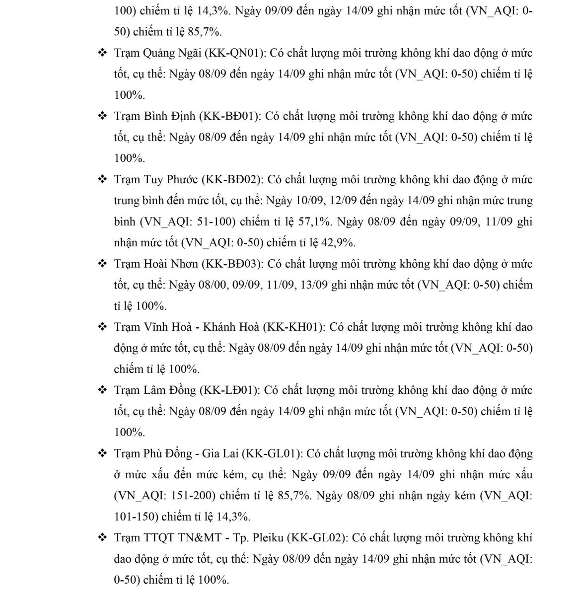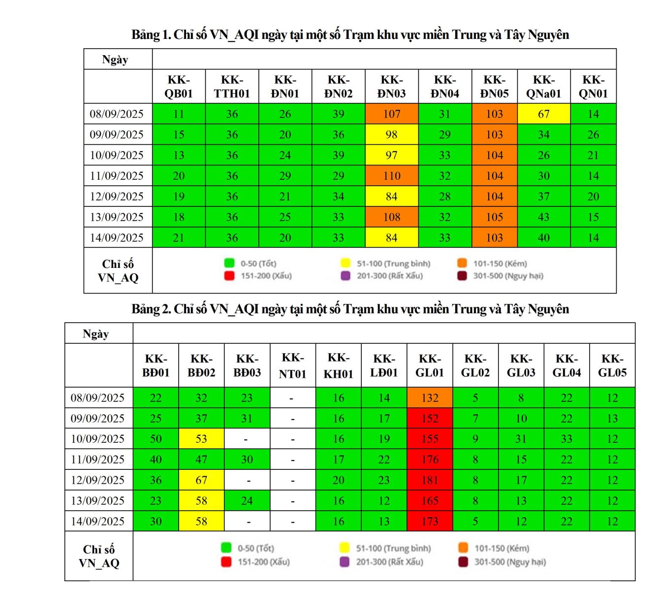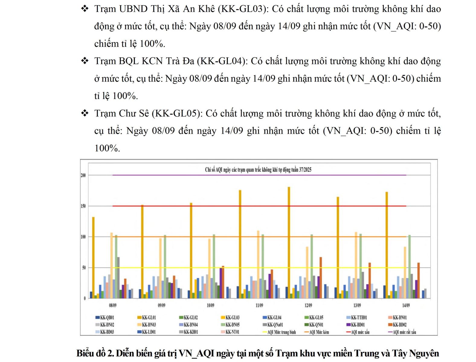 BÁO CÁO DIỄN BIẾN CHẤT LƯỢNG MÔI TRƯỜNG KHÔNG KHÍ XUNG QUANH TẠI KHU VỰC MIỀN TRUNG VÀ TÂY NGUYÊN Tuần 37 (từ ngày 08/09/2025 đến ngày 14/09/2025)