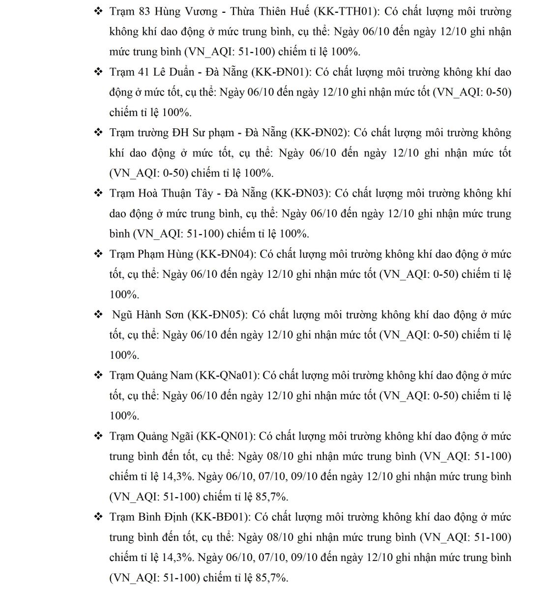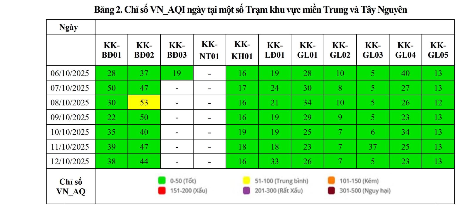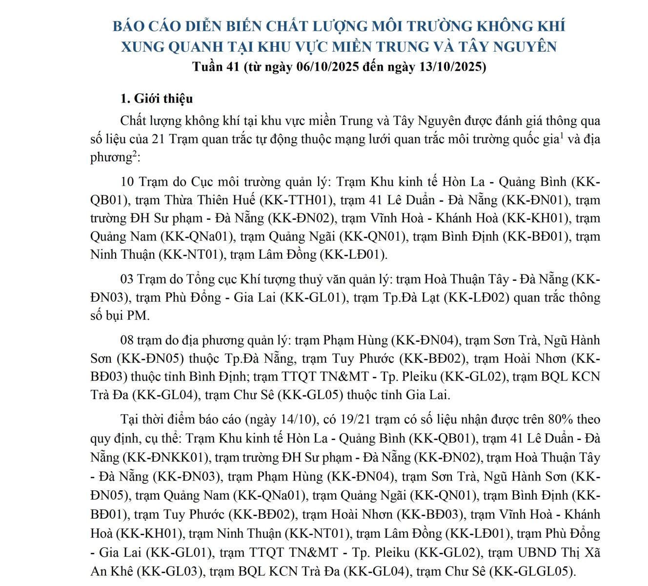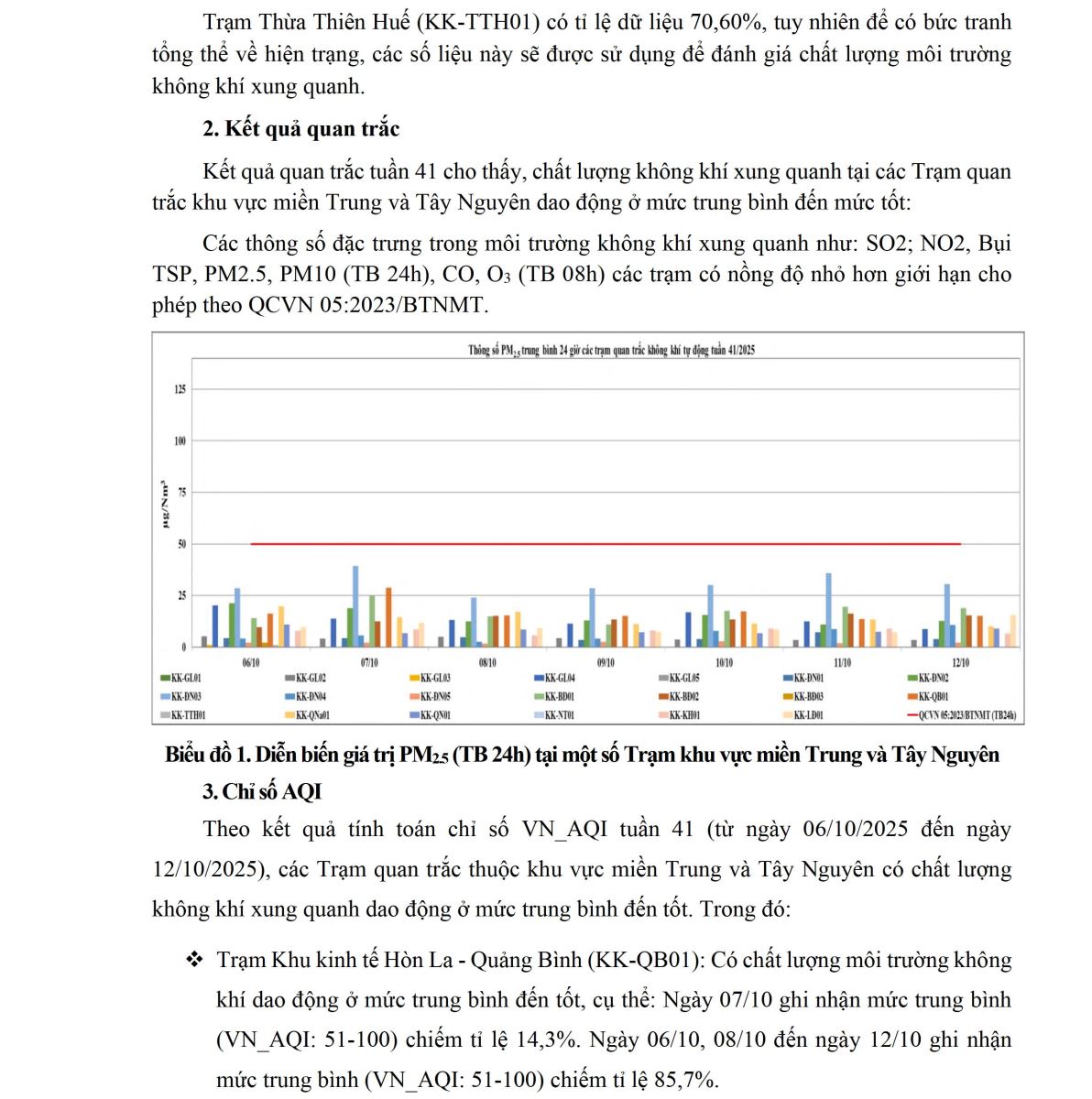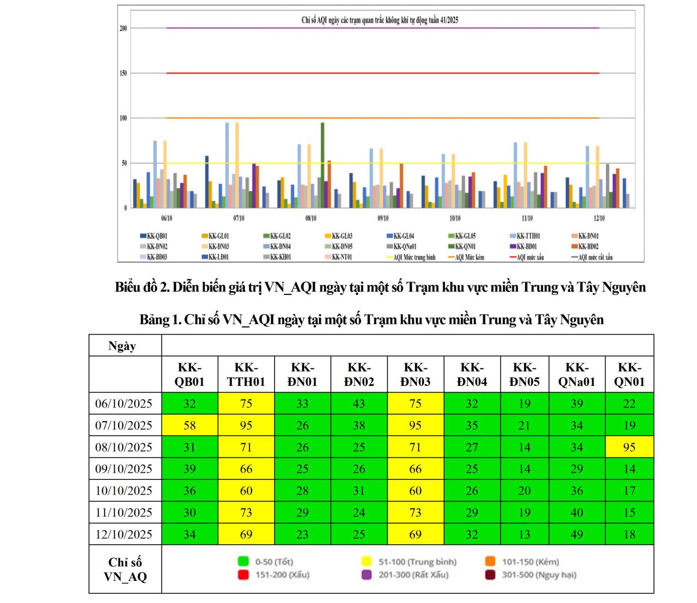 BÁO CÁO DIỄN BIẾN CHẤT LƯỢNG MÔI TRƯỜNG KHÔNG KHÍ XUNG QUANH TẠI KHU VỰC MIỀN TRUNG VÀ TÂY NGUYÊN Tuần 41 (từ ngày 06/10/2025 đến ngày 13/10/2025)