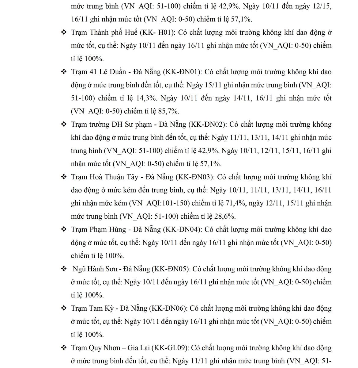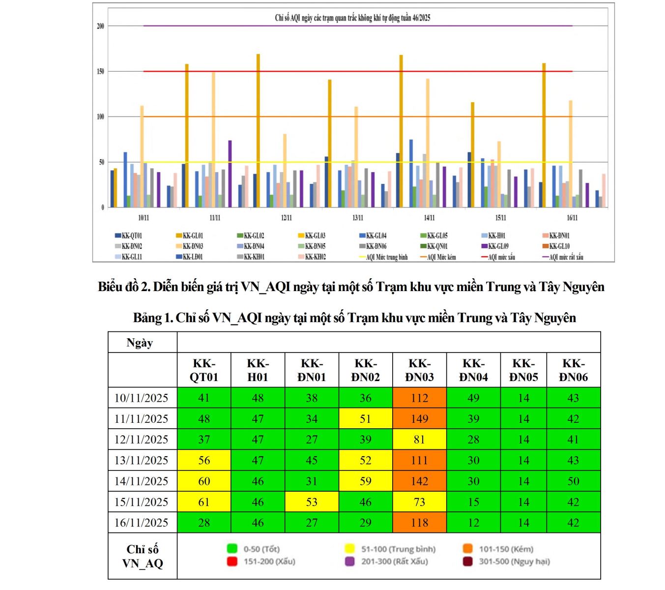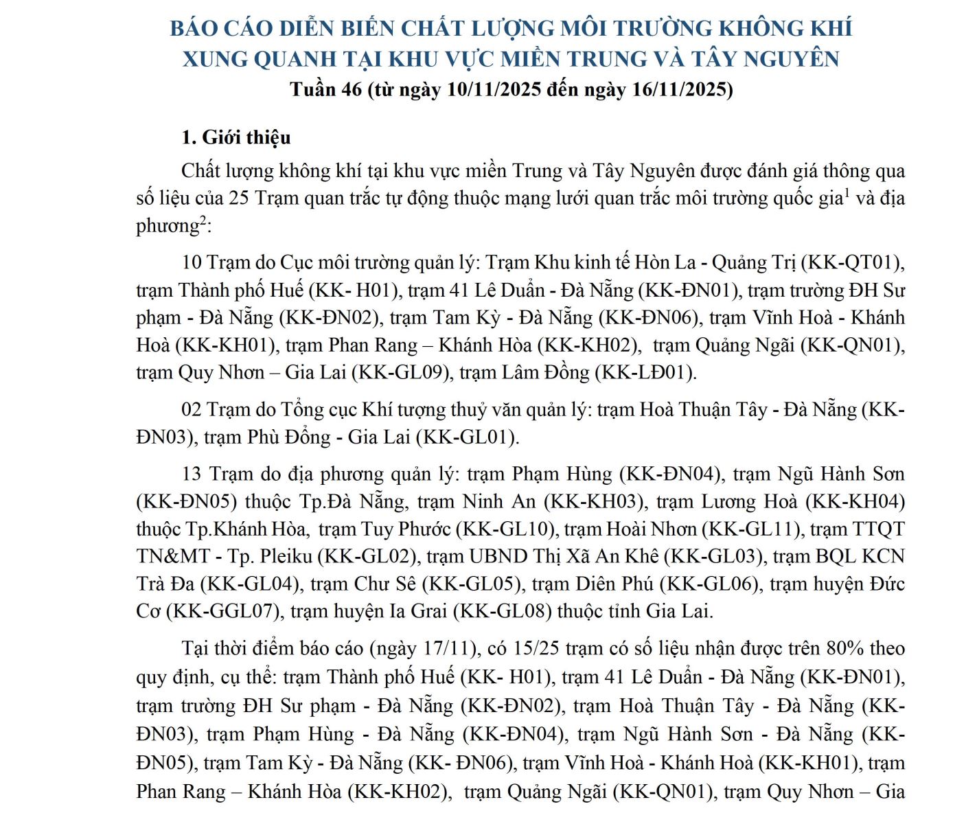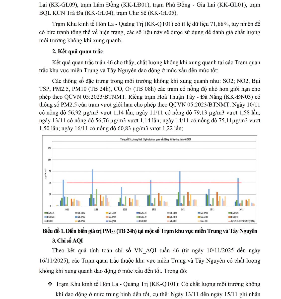 BÁO CÁO DIỄN BIẾN CHẤT LƯỢNG MÔI TRƯỜNG KHÔNG KHÍ XUNG QUANH TẠI KHU VỰC MIỀN TRUNG VÀ TÂY NGUYÊN Tuần 46 (từ ngày 10/11/2025 đến ngày 16/11/2025)