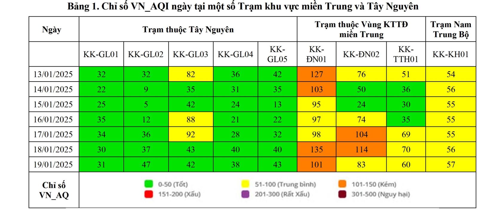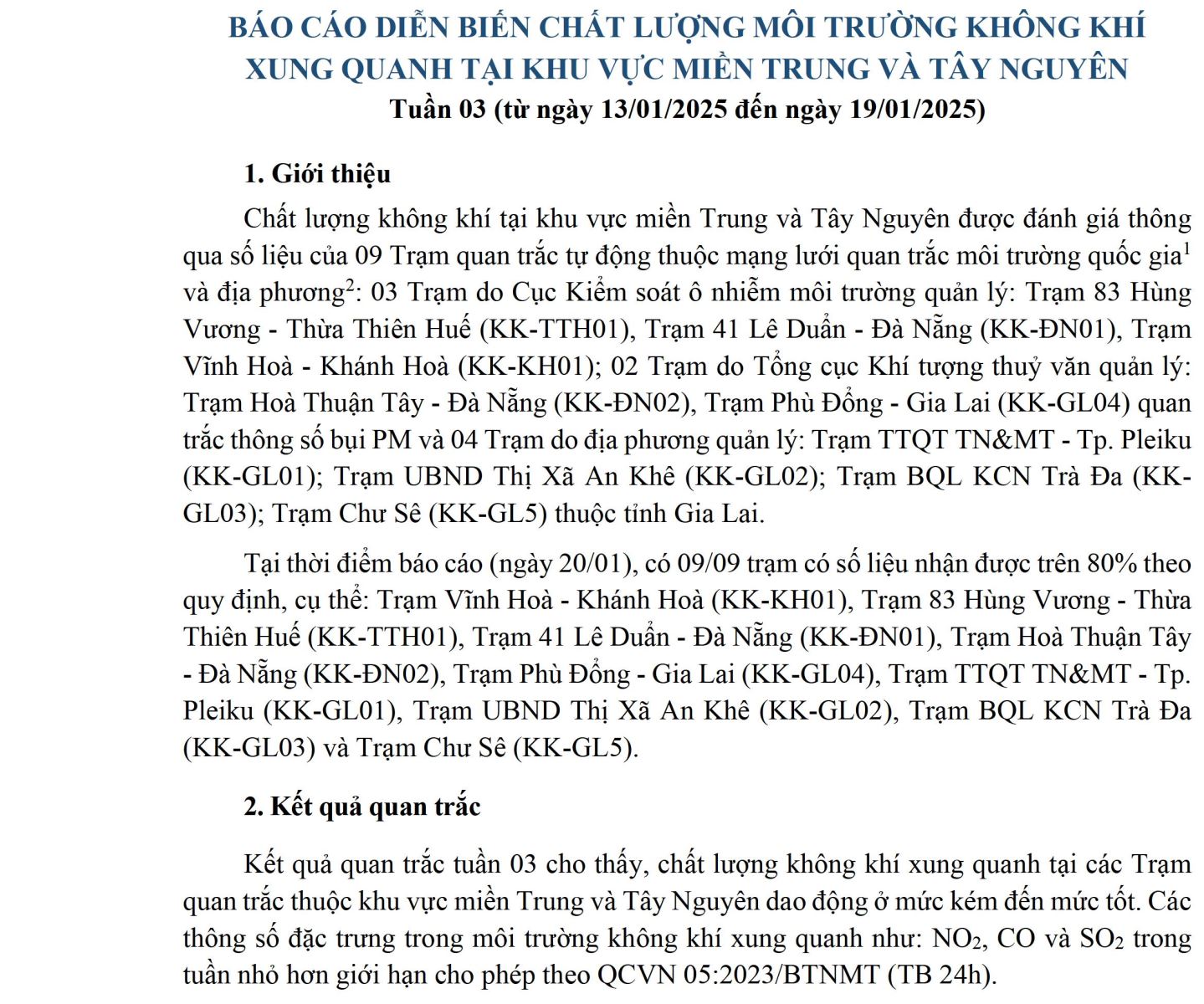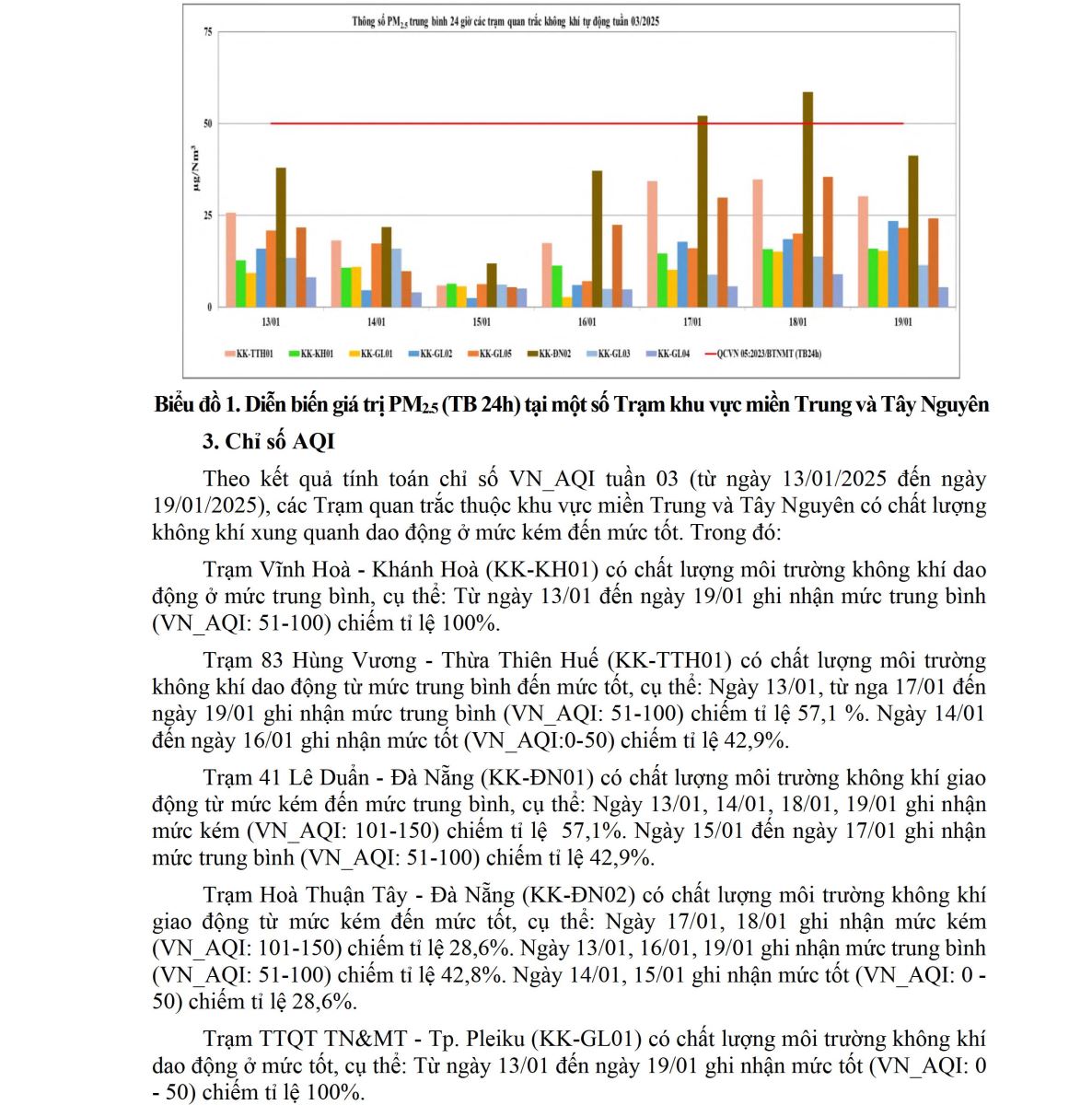 BÁO CÁO DIỄN BIẾN CHẤT LƯỢNG MÔI TRƯỜNG KHÔNG KHÍ XUNG QUANH TẠI KHU VỰC MIỀN TRUNG VÀ TÂY NGUYÊN Tuần 03 (từ ngày 13/01/2025 đến ngày 19/01/2025)