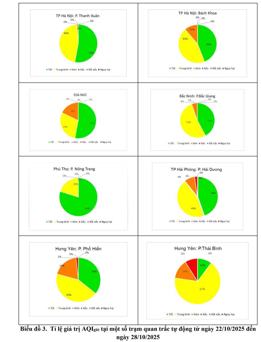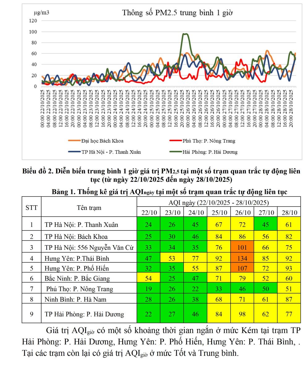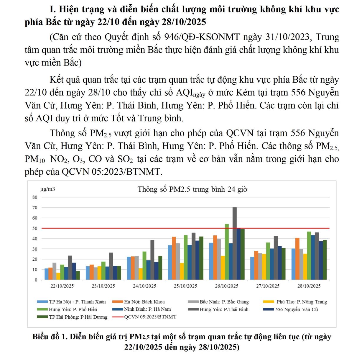 Hiện trạng và diễn biến chất lượng môi trường không khí khu vực phía Bắc từ ngày 22/10 đến ngày 28/10/2025