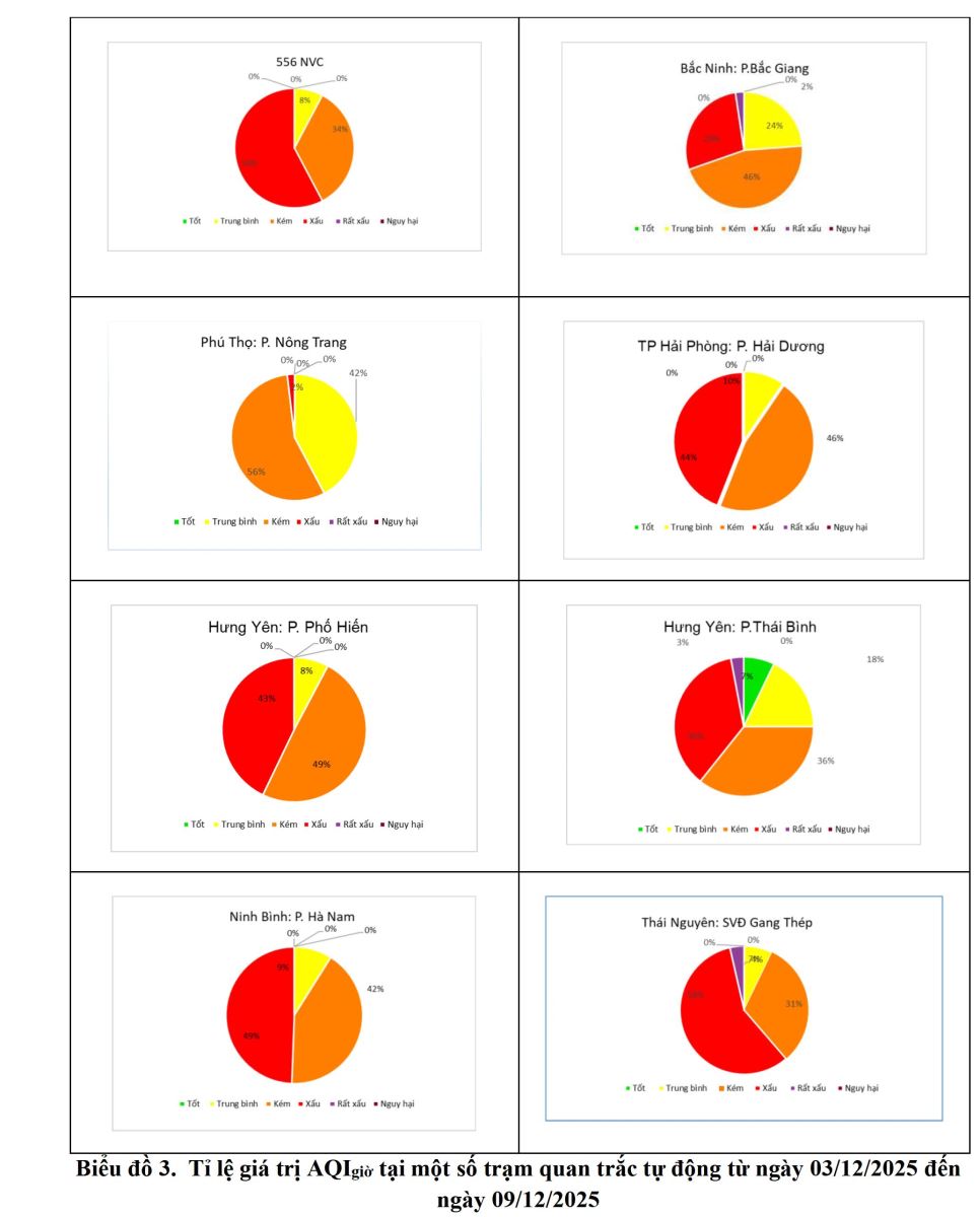 Hiện trạng và diễn biến chất lượng môi trường không khí khu vực phía Bắc từ ngày 03/12 đến ngày 09/12/2025