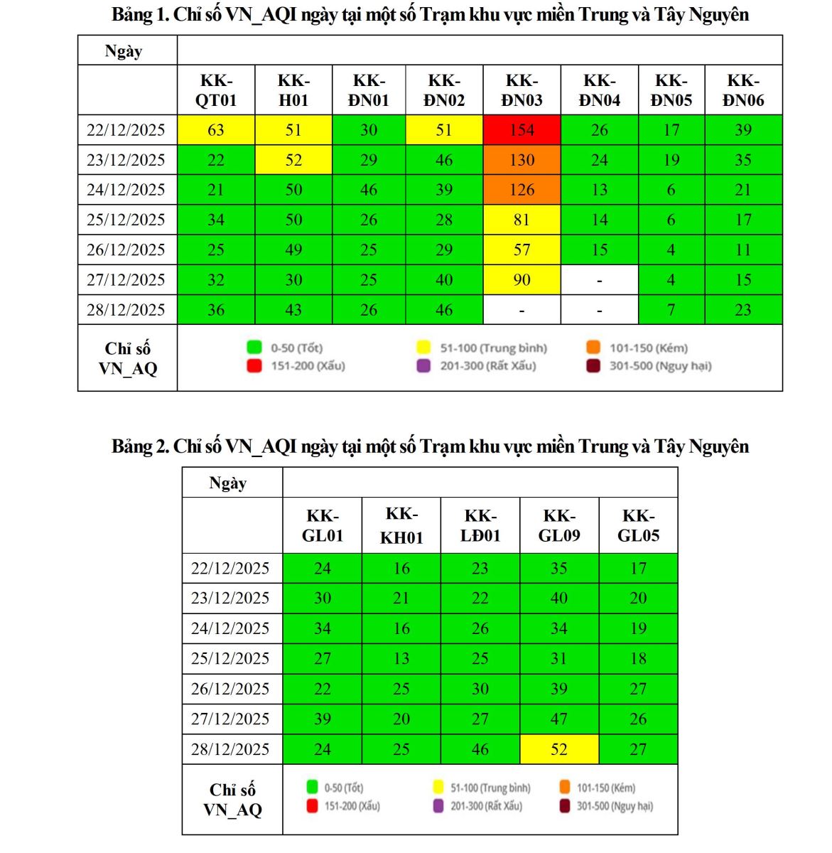 - CHẤT LƯỢNG MÔI TRƯỜNG KHÔNG KHÍ XUNG QUANH TẠI KHU VỰC MIỀN TRUNG VÀ TÂY NGUYÊN Tuần 51 (từ ngày 15/12/2025 đến ngày 21/12/2025)