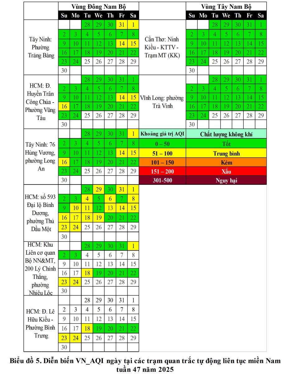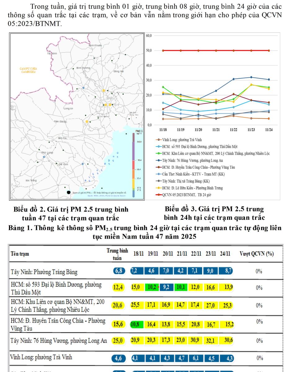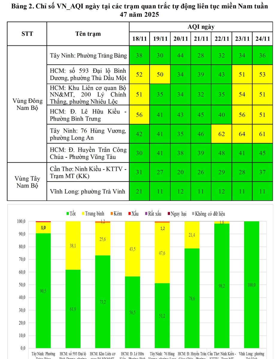 CHẤT LƯỢNG MÔI TRƯỜNG KHÔNG KHÍ XUNG QUANH KHU VỰC MIỀN NAM Tuần 47 (Từ ngày 18/11/2025 đến ngày 24/11/2025)