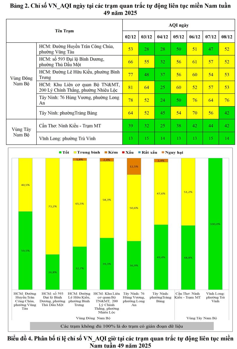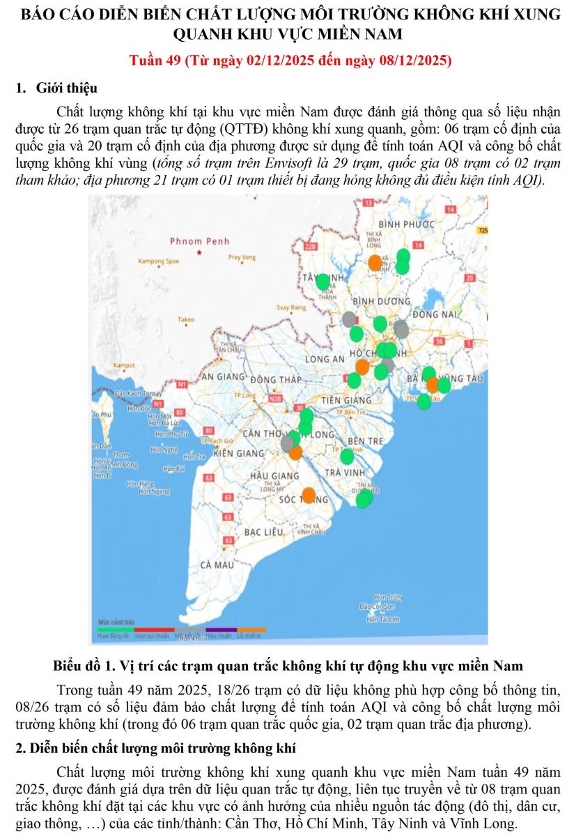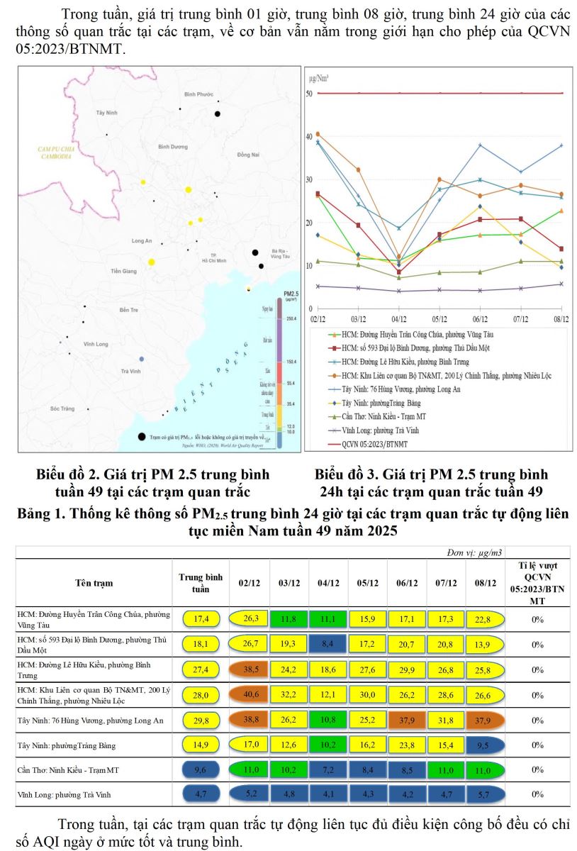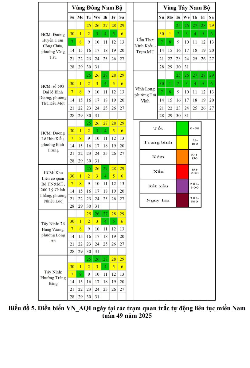 CHẤT LƯỢNG MÔI TRƯỜNG KHÔNG KHÍ XUNG QUANH KHU VỰC MIỀN NAM Tuần 49 (Từ ngày 02/12/2025 đến ngày 08/12/2025)