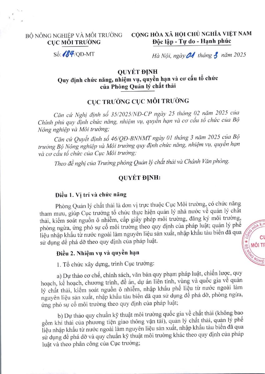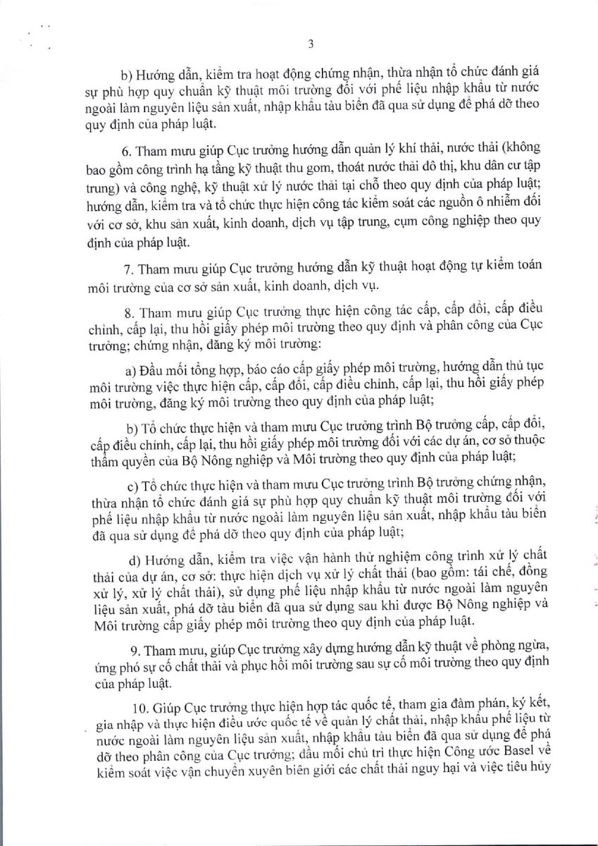 - Chức năng, nhiệm vụ Cục Môi trường