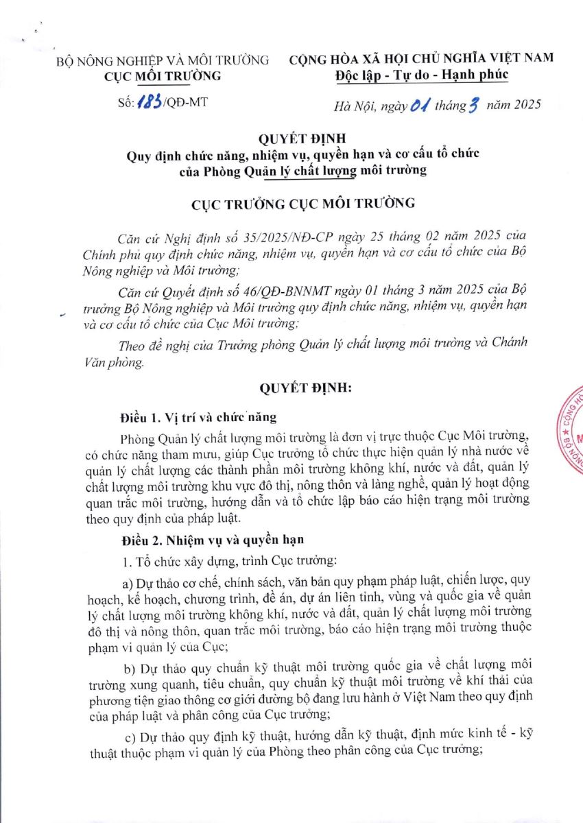 - Chức năng, nhiệm vụ Cục Môi trường