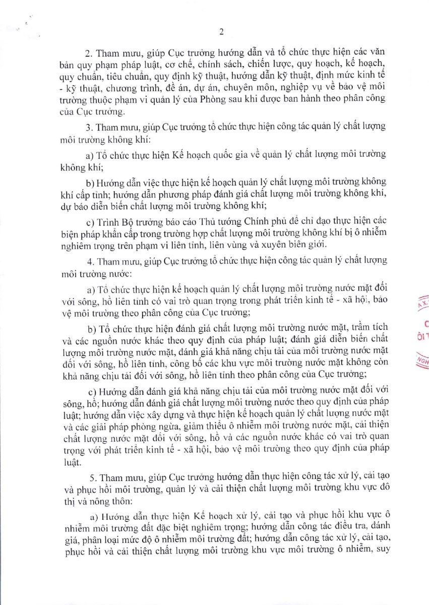 - Chức năng, nhiệm vụ Phòng Quy hoạch và Đánh giá môi trường