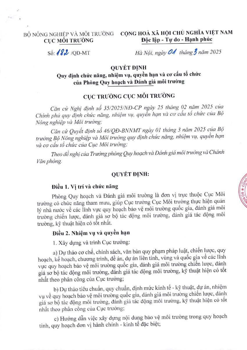 Chức năng, nhiệm vụ Phòng Quy hoạch và Đánh giá môi trường