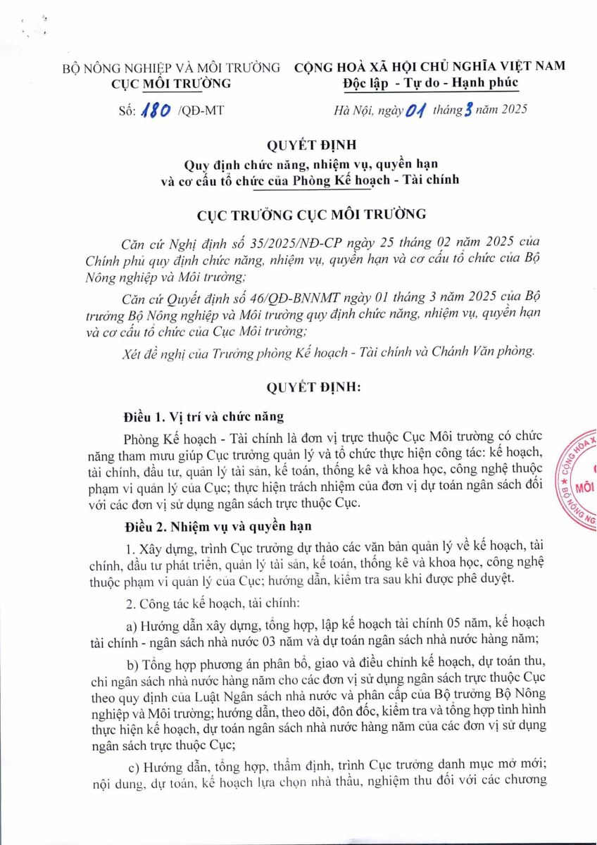 - Chức năng, nhiệm vụ Cục Môi trường