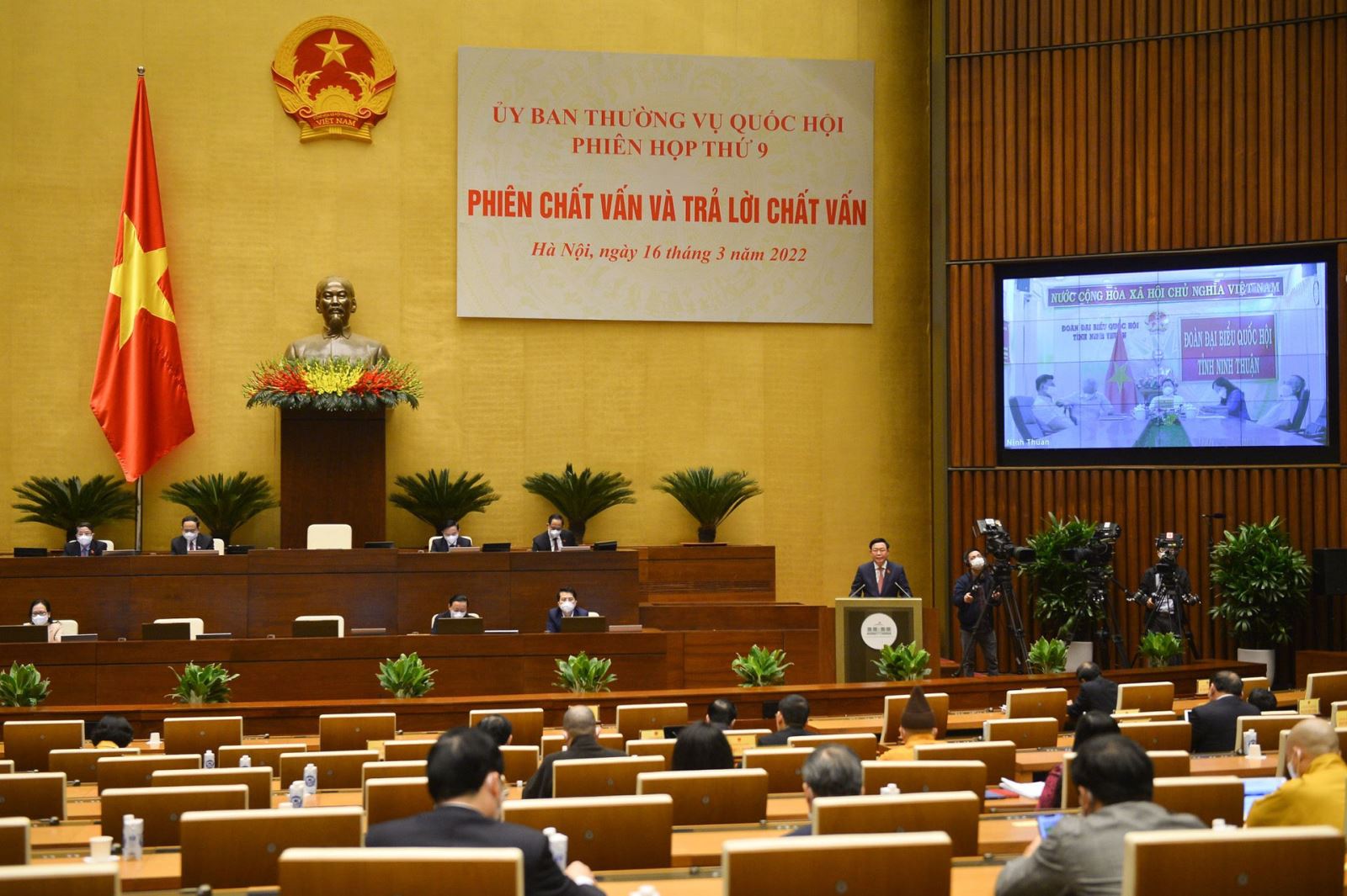 Chiều 16/3, dưới sự điều hành của Phó Chủ tịch Quốc hội Nguyễn Đức Hải, Ủy ban Thường vụ Quốc hội tiến hành phần chất vấn và trả lời chất vấn về nhóm vấn đề thuộc lĩnh vực tài nguyên và môi trường. Bộ trưởng Bộ Tài nguyên và Môi trường Trần Hồng Hà đăng đàn trả lời các câu hỏi Đại biểu Quốc hội và cử tri quan tâm, trong đó là các vấn đề xử lý rác thải, chất thải, vấn đề ô nhiễm các lưu vực sông trong thời gian vừa qua.