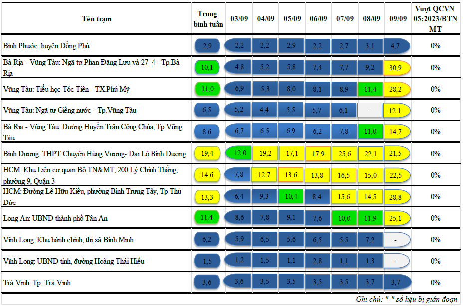 Kết quả quan trắc chất lượng môi trường không khí tại khu vực miền Nam tuần 36 năm 2024
