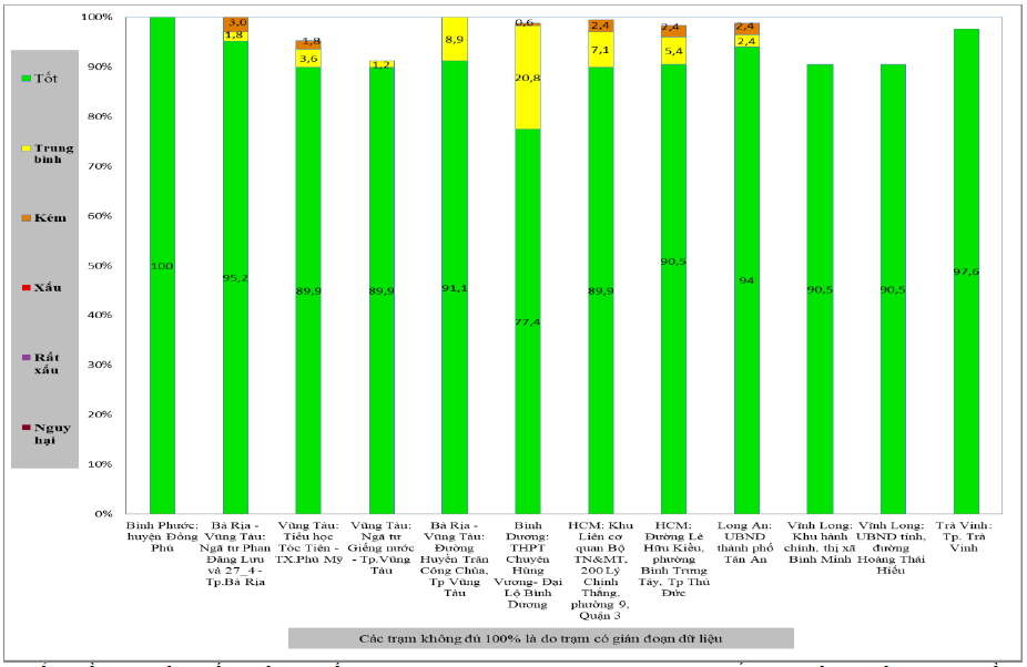 Biểu đồ 2: Phân bố tỉ lệ chỉ số VN_AQI giờ tại các trạm quan trắc tự động liên tục miền Nam