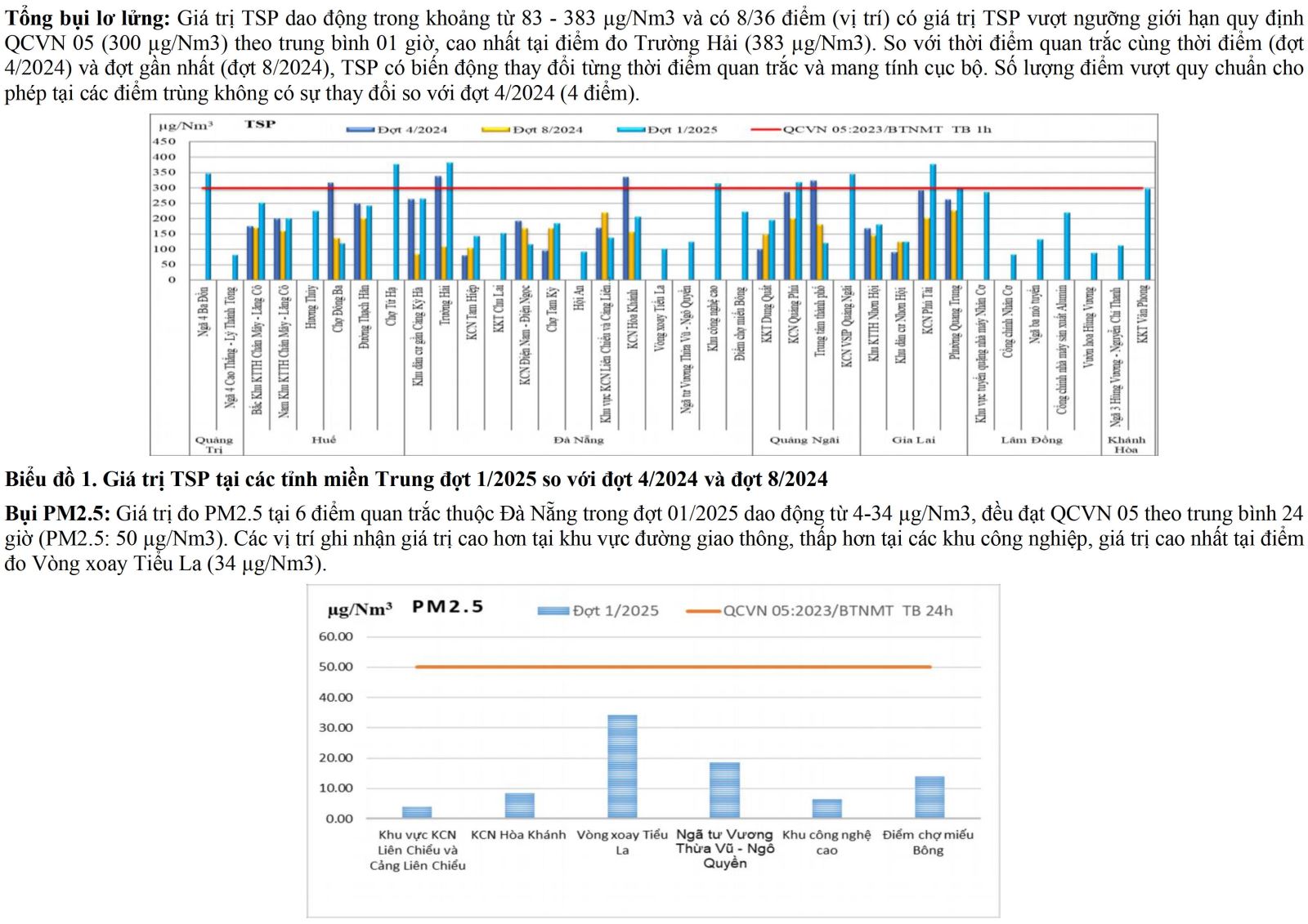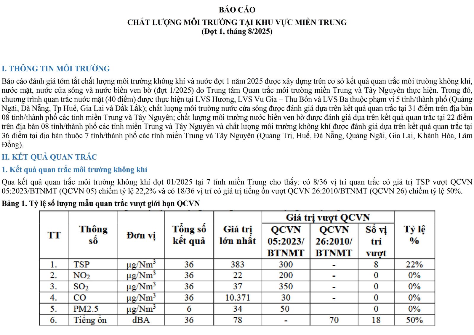 CHẤT LƯỢNG MÔI TRƯỜNG TẠI KHU VỰC MIỀN TRUNG (Đợt 1, tháng 8/2025)