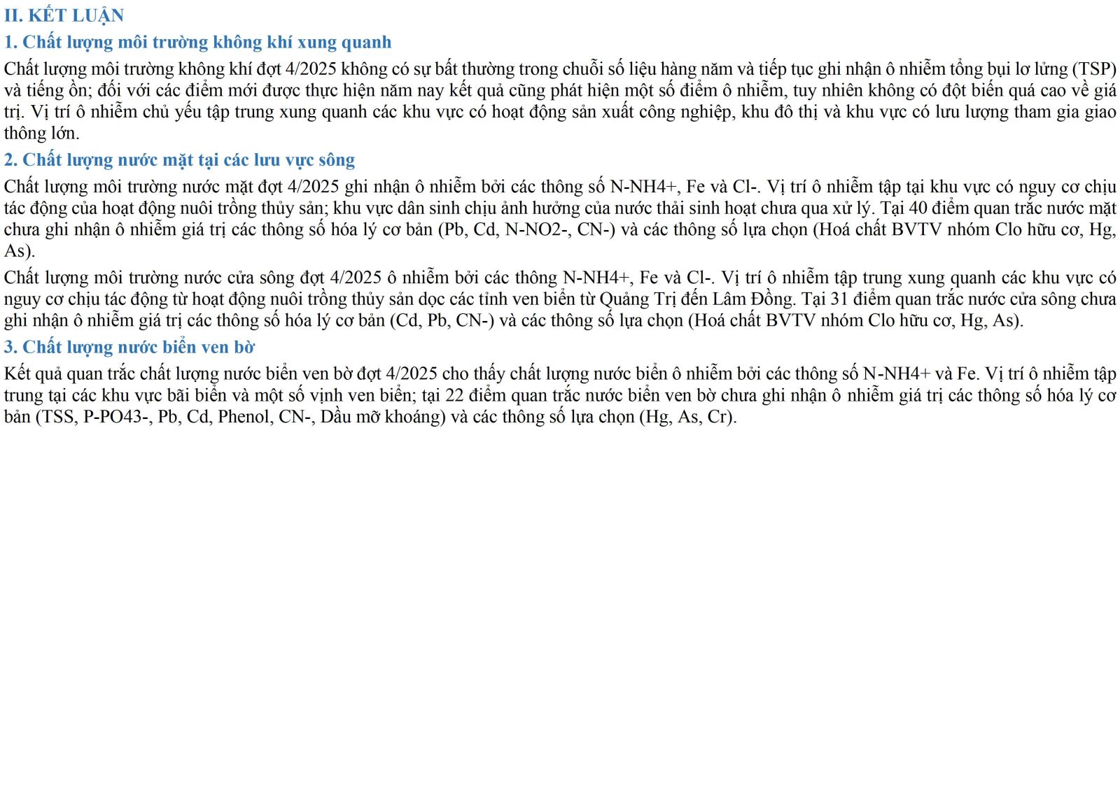 - CHẤT LƯỢNG MÔI TRƯỜNG TẠI KHU VỰC MIỀN TRUNG (Đợt 2, tháng 9/2025)